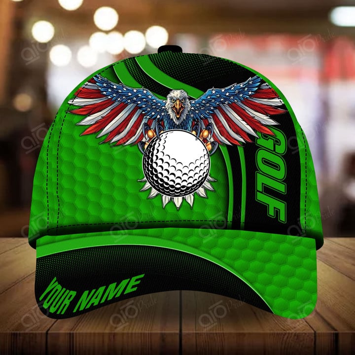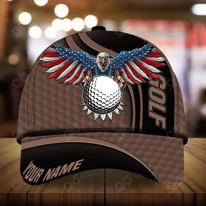 Joycorners Eagle And Golf Customized Name Multicolor Leather Pattern 3D Cap