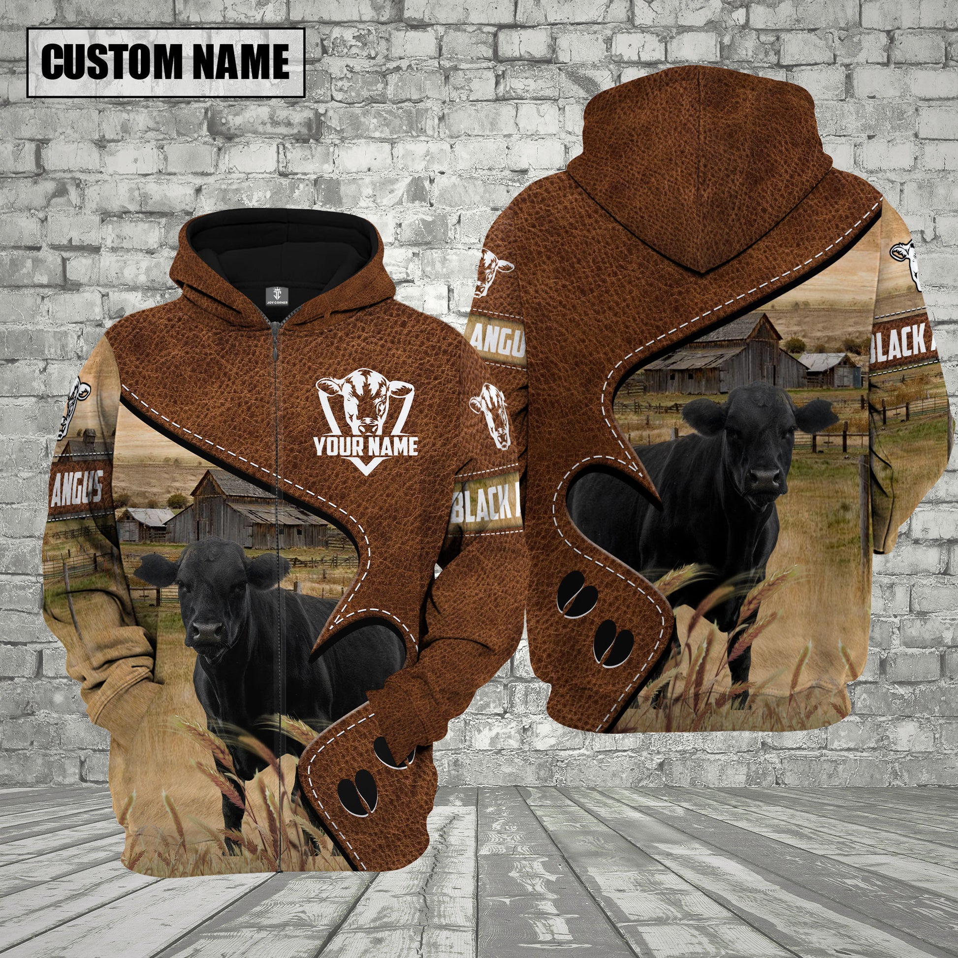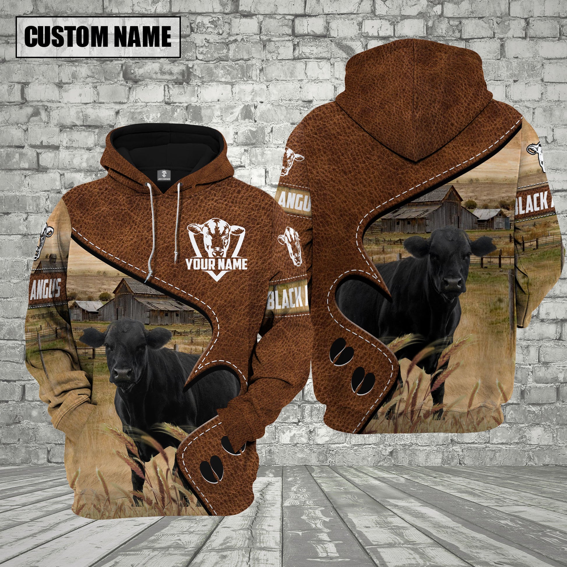 Joycorners Farm Black Angus Heart Shape Custom Name 3D Shirts