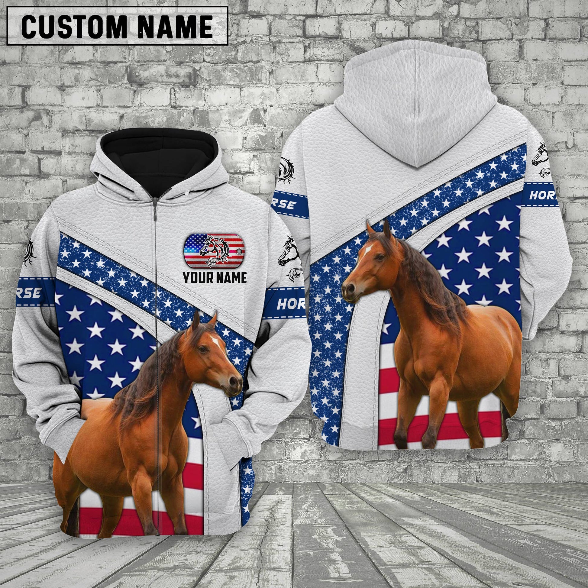 Joycorners Farm Brown Horse American Flag Custom Name 3D Shirts