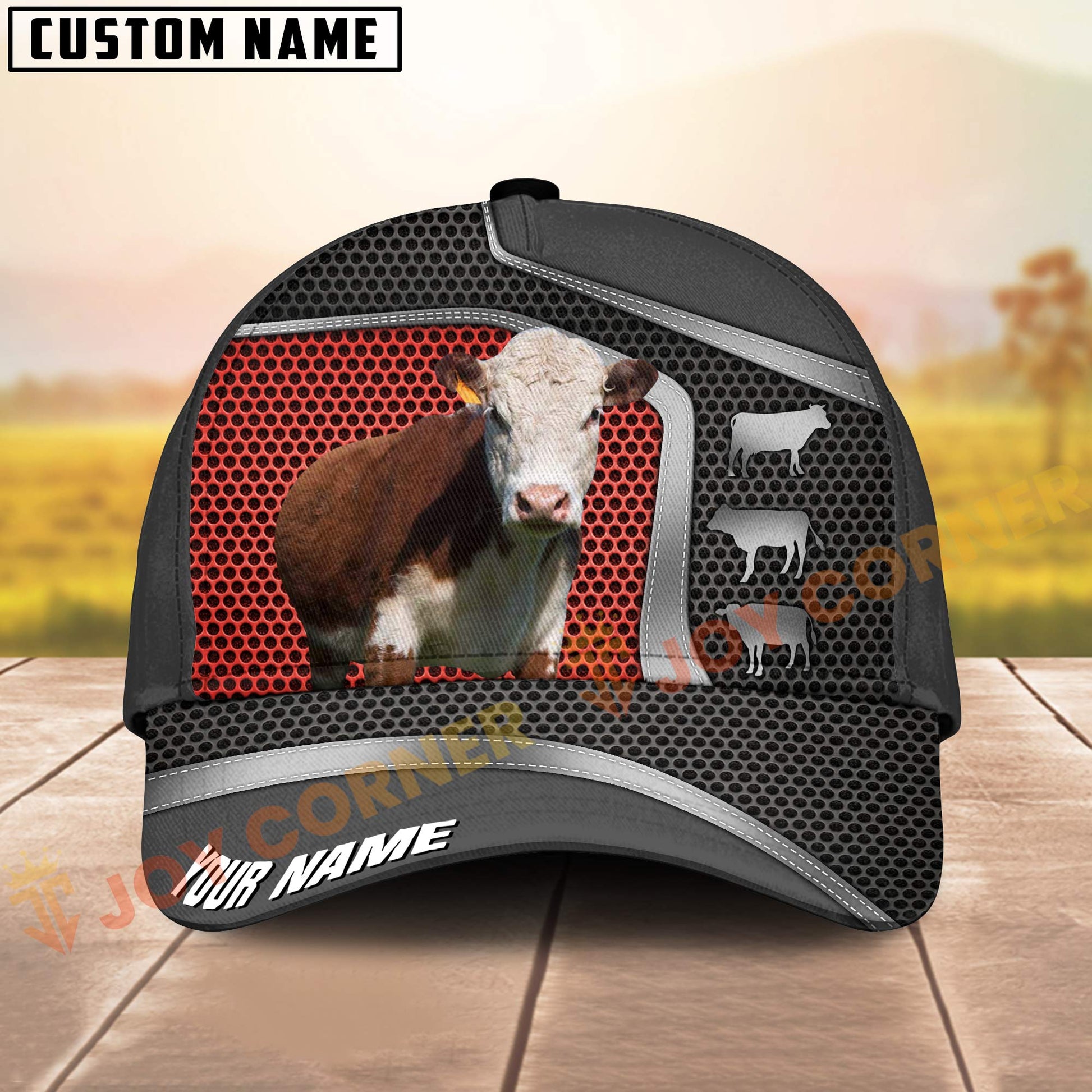 Joycorners Farm Cattle Cow Ranch Style Mesh Cap Personalized Name All Over Print Cap (8 Breeds)