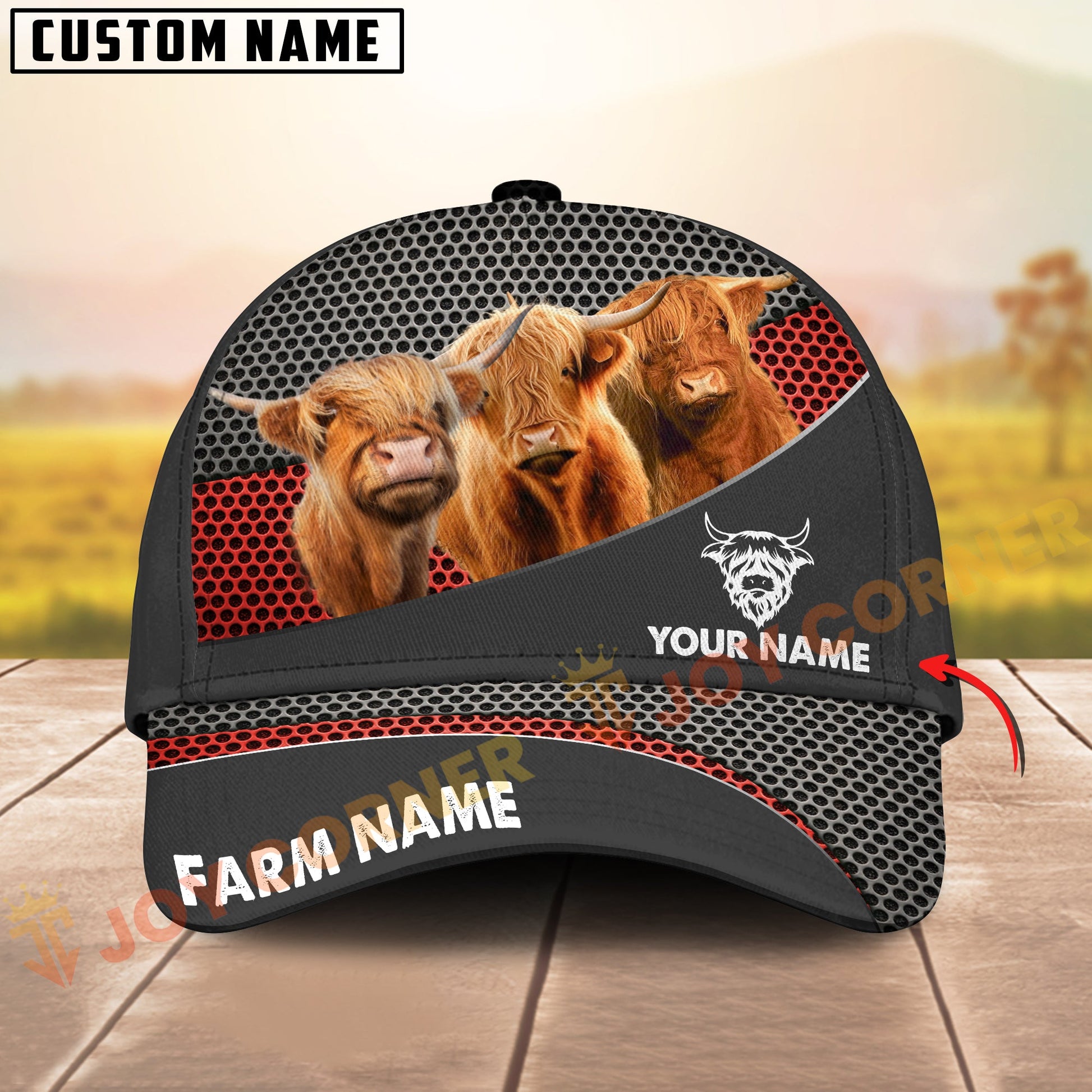 Joycorners Farm Cattle Honeycomb Mesh Pattern Personalized Name 3D Classic Cap (8 Breeds)