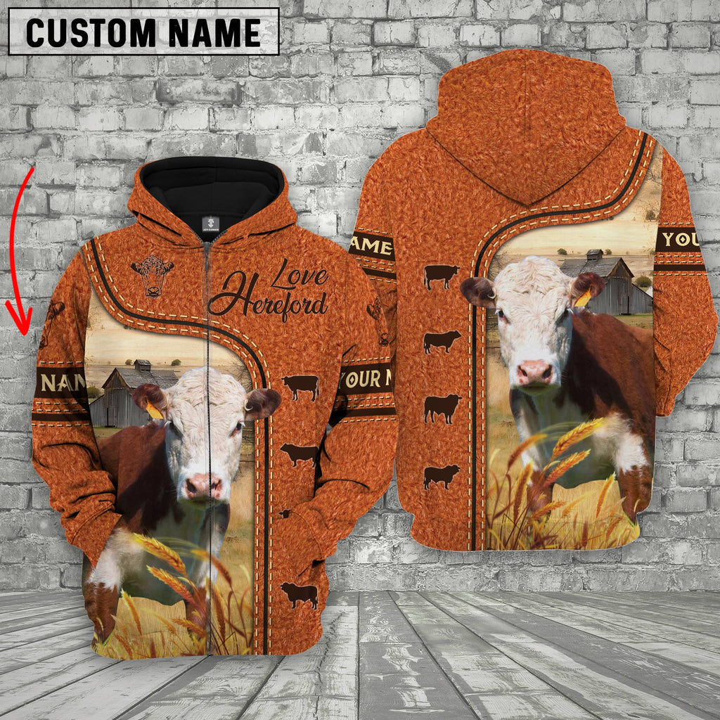 Joycorners Farm Custom Name Hereford Leather Pattern 3D Printed Hoodie