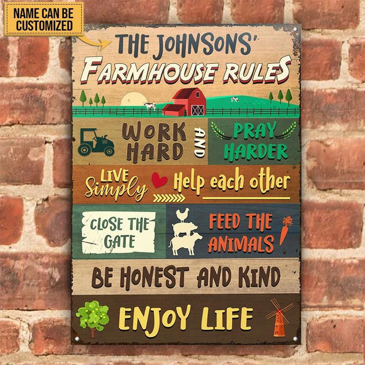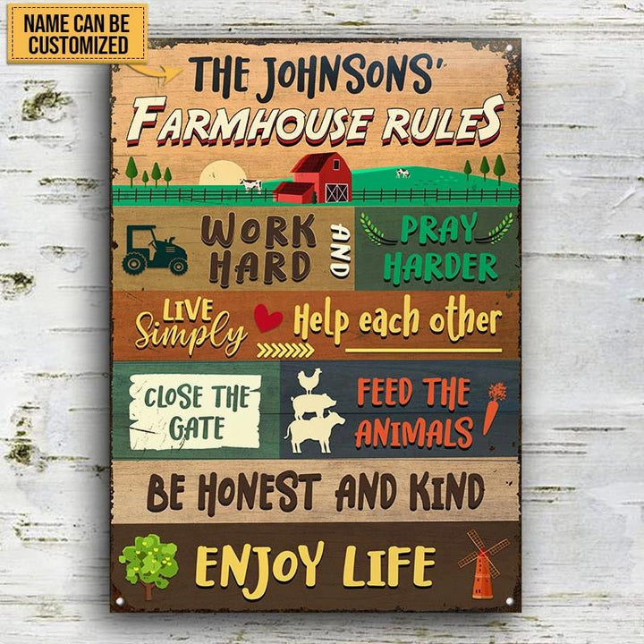 Joycorners Farm Farmhouse Rule Work Hard Lovely Rectangle Metal Sign Custom Name