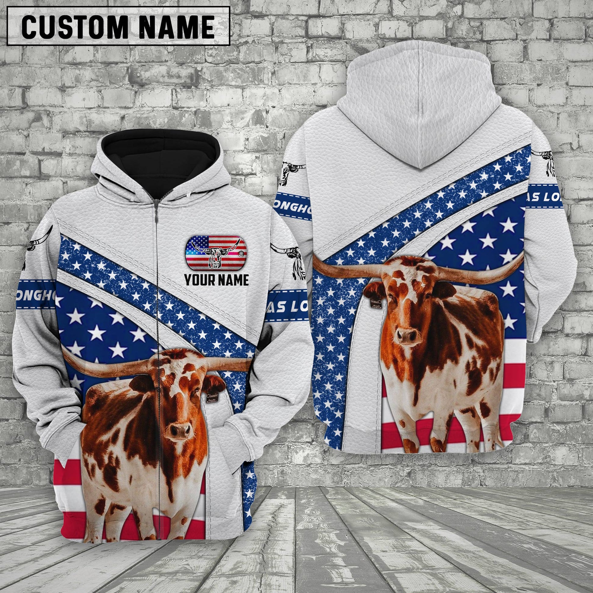 Joycorners Farm Texas Longhorn American Flag Custom Name 3D Shirts