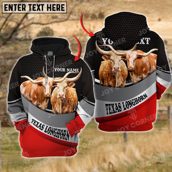 Joycorners Farm Texas Longhorn Custom Name And Farm name Metal Pattern 3D Printed Hoodie