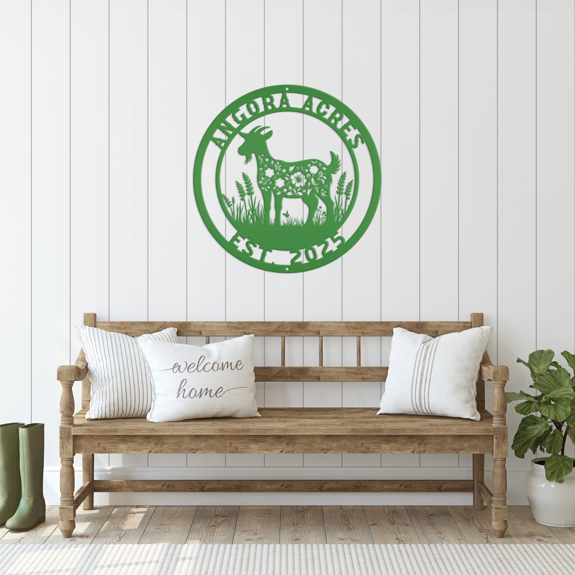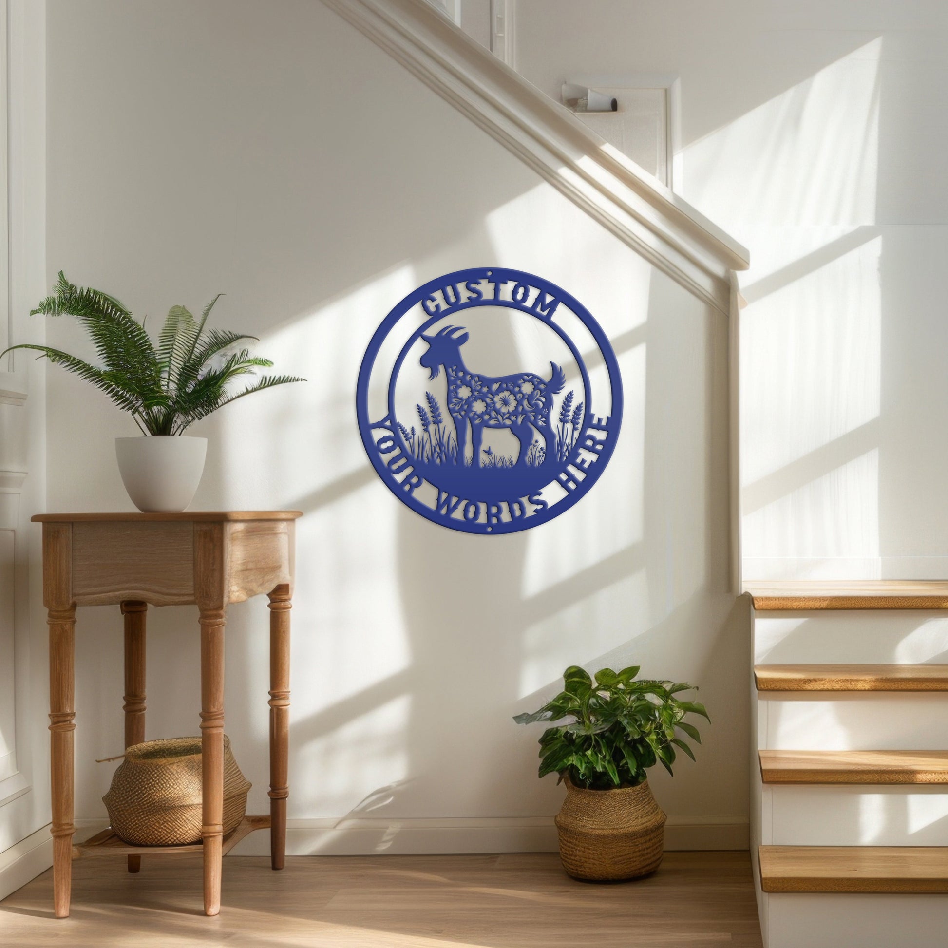 Joycorners Floral Goat Farmhouse Decor - Personalized Outdoor Metal Sign - Rustic Wall Hanging - Cute Homestead Animal Wall Art - Unique Farmer Gift LM0110