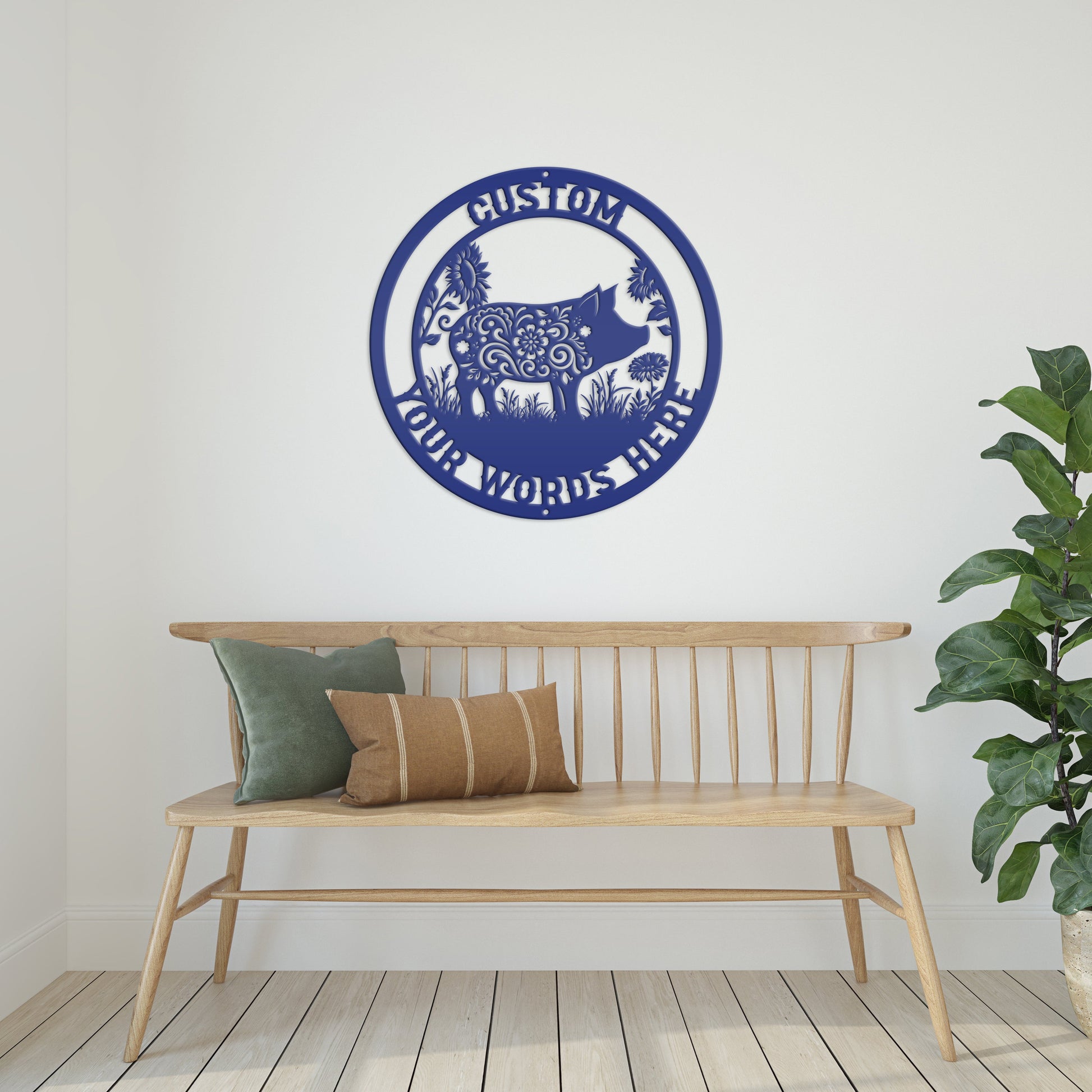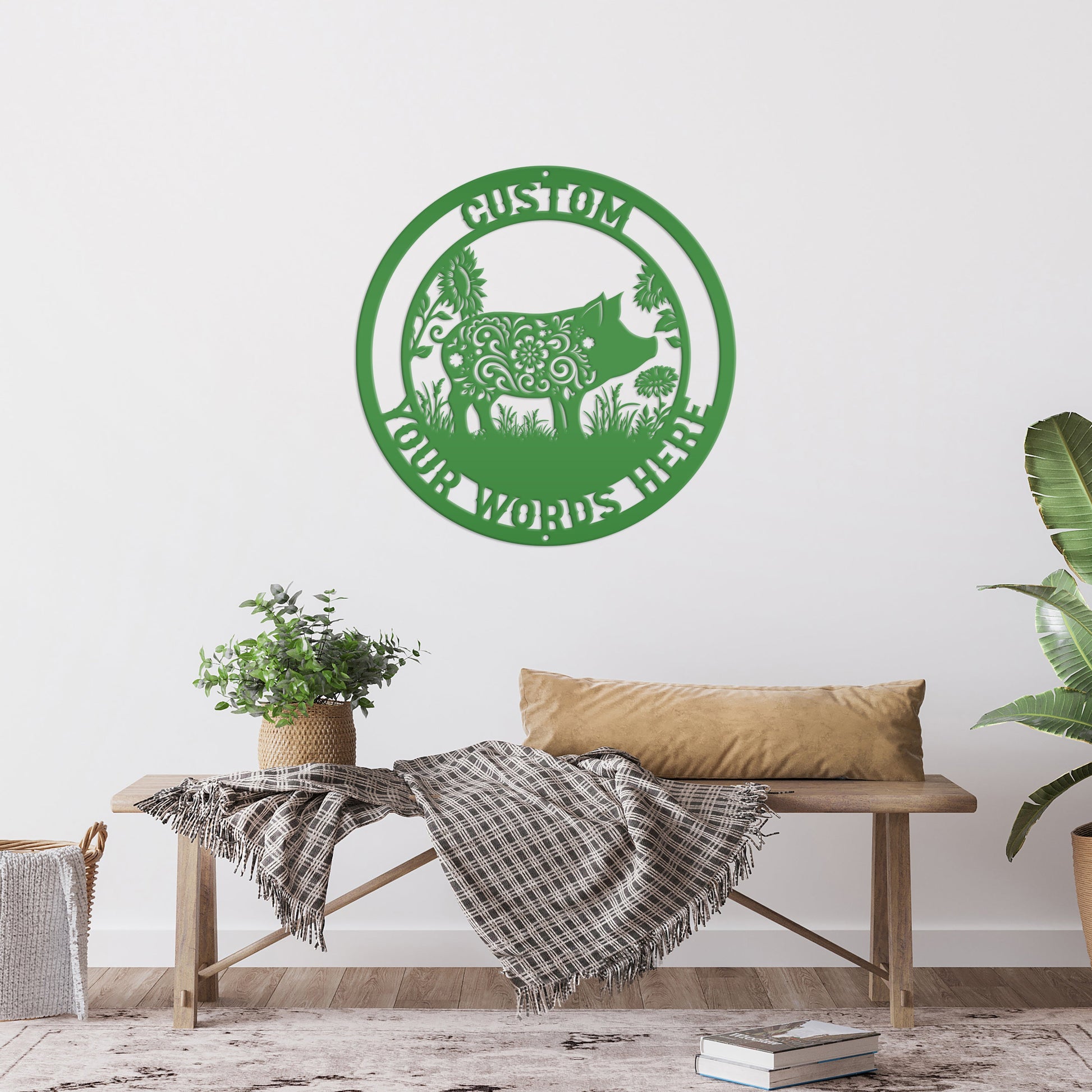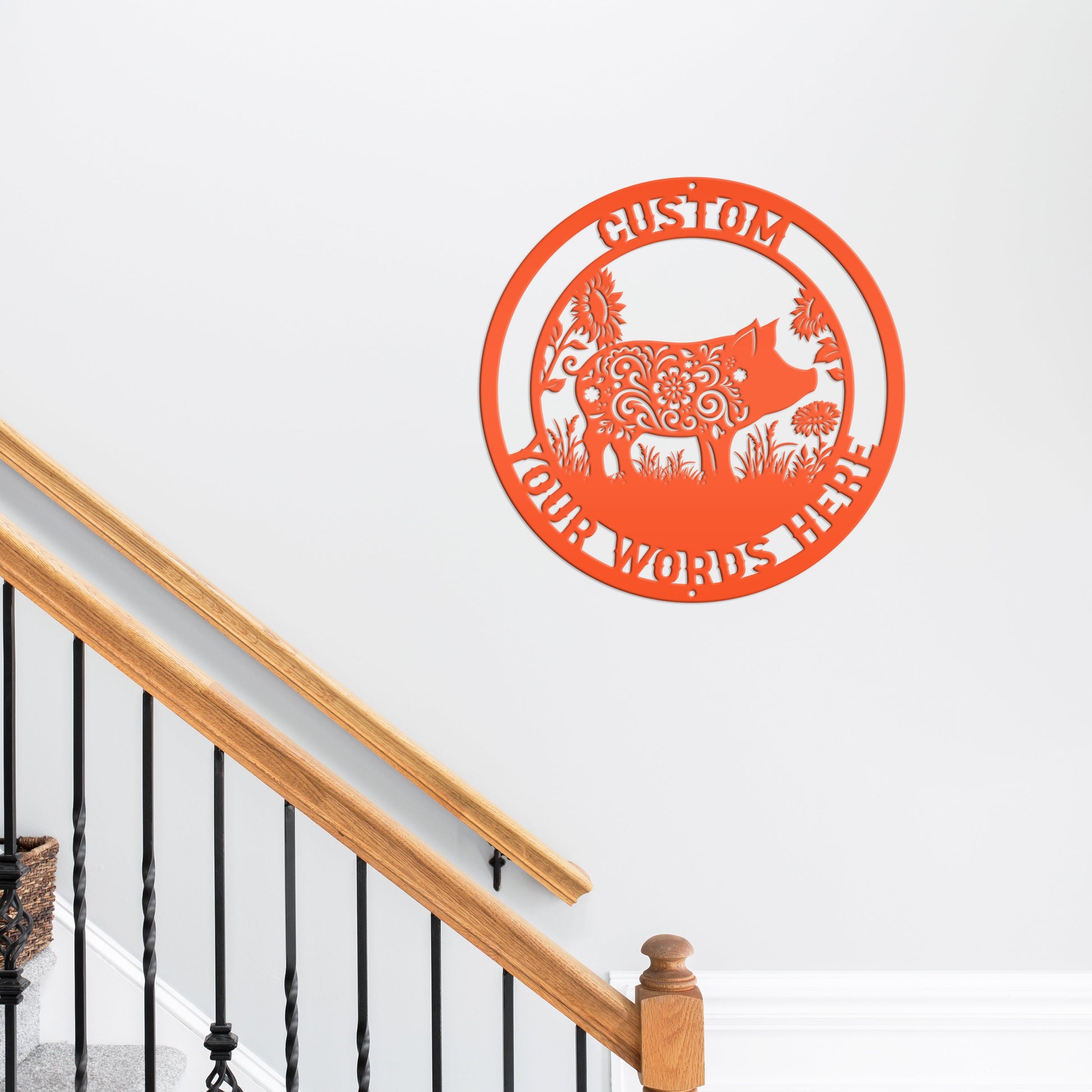 Joycorners Floral Pig Metal Farm Sign - Rustic Farmhouse Decor - Custom Wall Hangings - Personalized Farmers Gift - Charming Outdoor Front Porch Decor LM0110