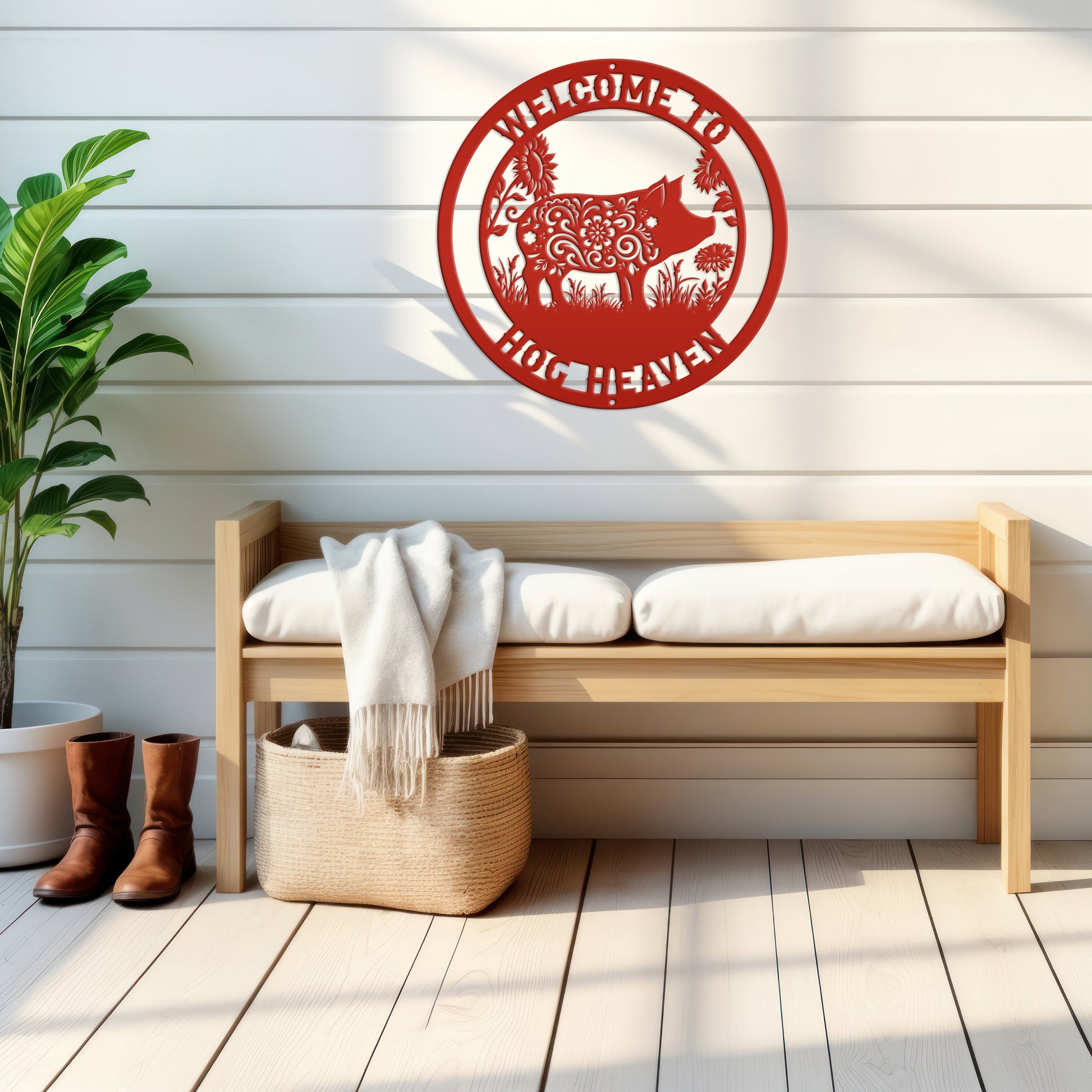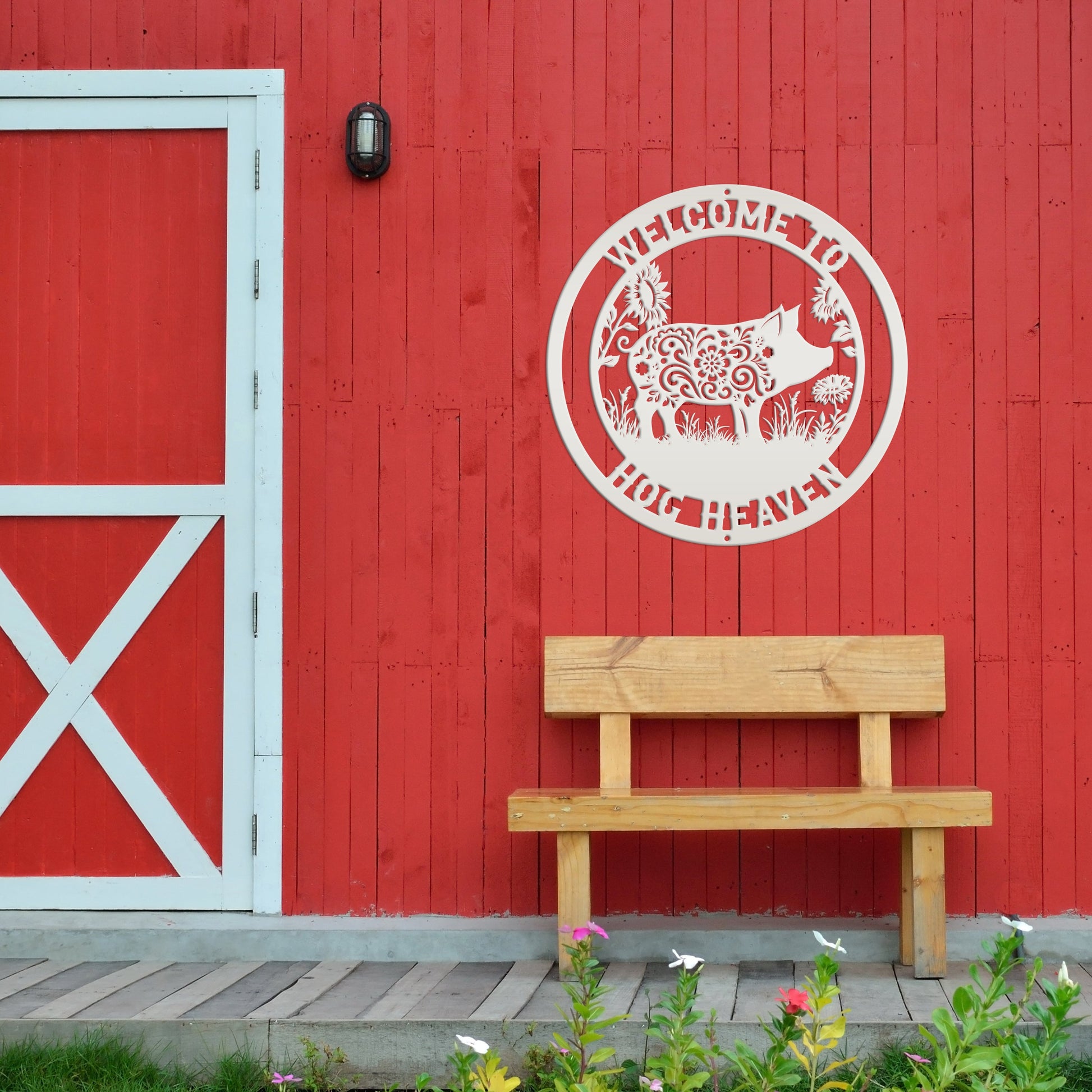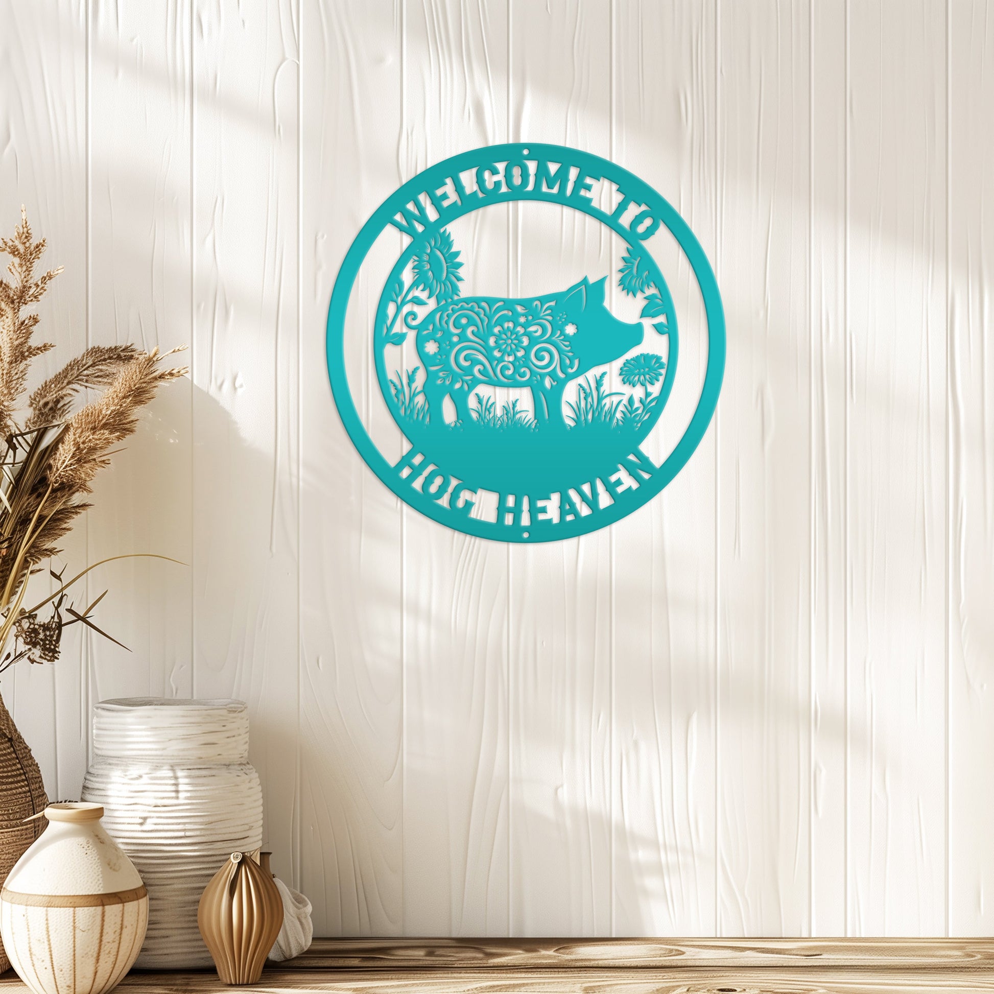 Joycorners Floral Pig Metal Farm Sign - Rustic Farmhouse Decor - Custom Wall Hangings - Personalized Farmers Gift - Charming Outdoor Front Porch Decor LM0110