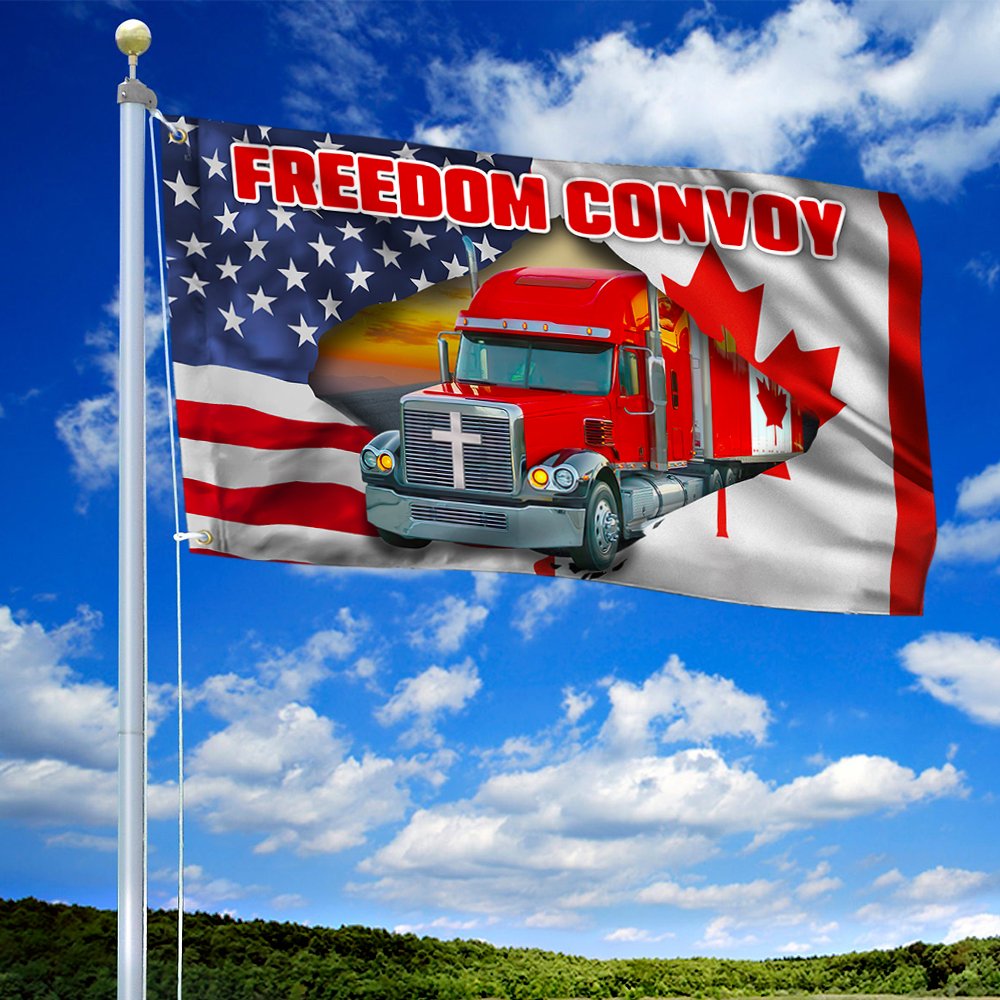 Joycorners Freedom Convoy Flag Freedom Convoy 2022 Canadian Trucker Mandate Freedom Jesus Christian Grommet Flag 3D All Over Printed