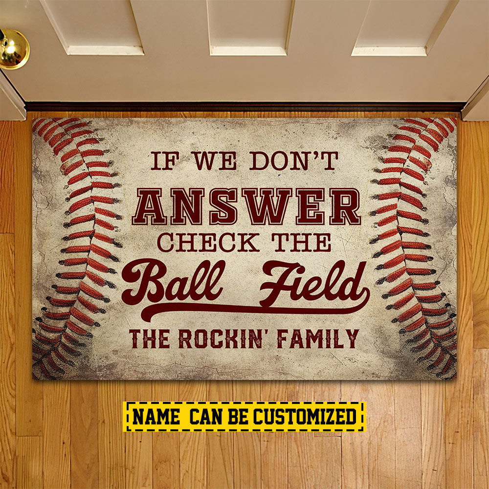 Joycorners Funny Baseball Doormat, If We Don't Answer Check The Ball Field, Personalized Baseball Doormat For Home Decor Housewarming Gift, Welcome Mat Gift For Baseball Lovers, Baseball Players LM0210