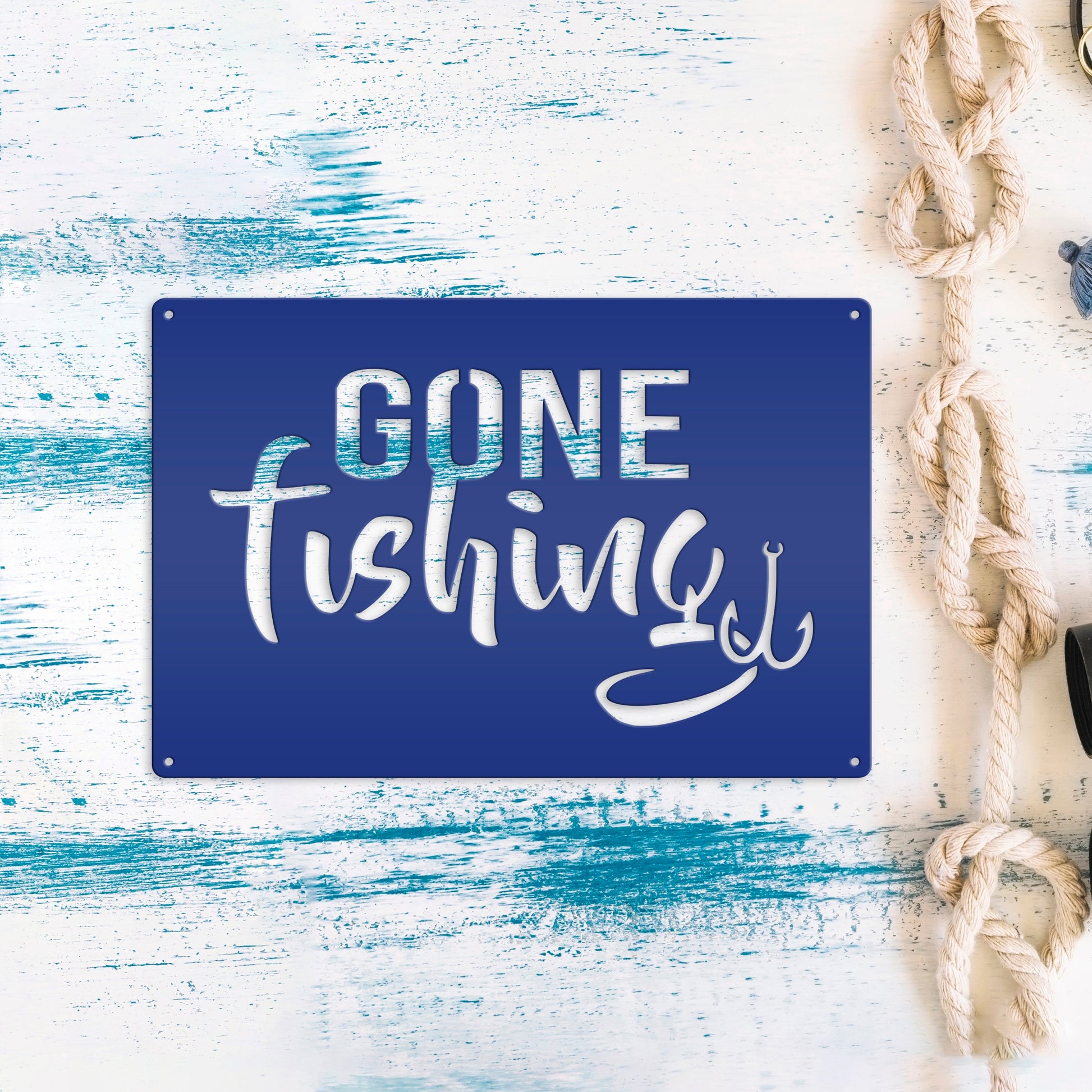 Joycorners Gone Fishing Metal Sign, Fishing Signs, Fishing Wall Decor, Fishing Wall Art, Fishing Signage, Wall Hanging Fish Decor LM0110