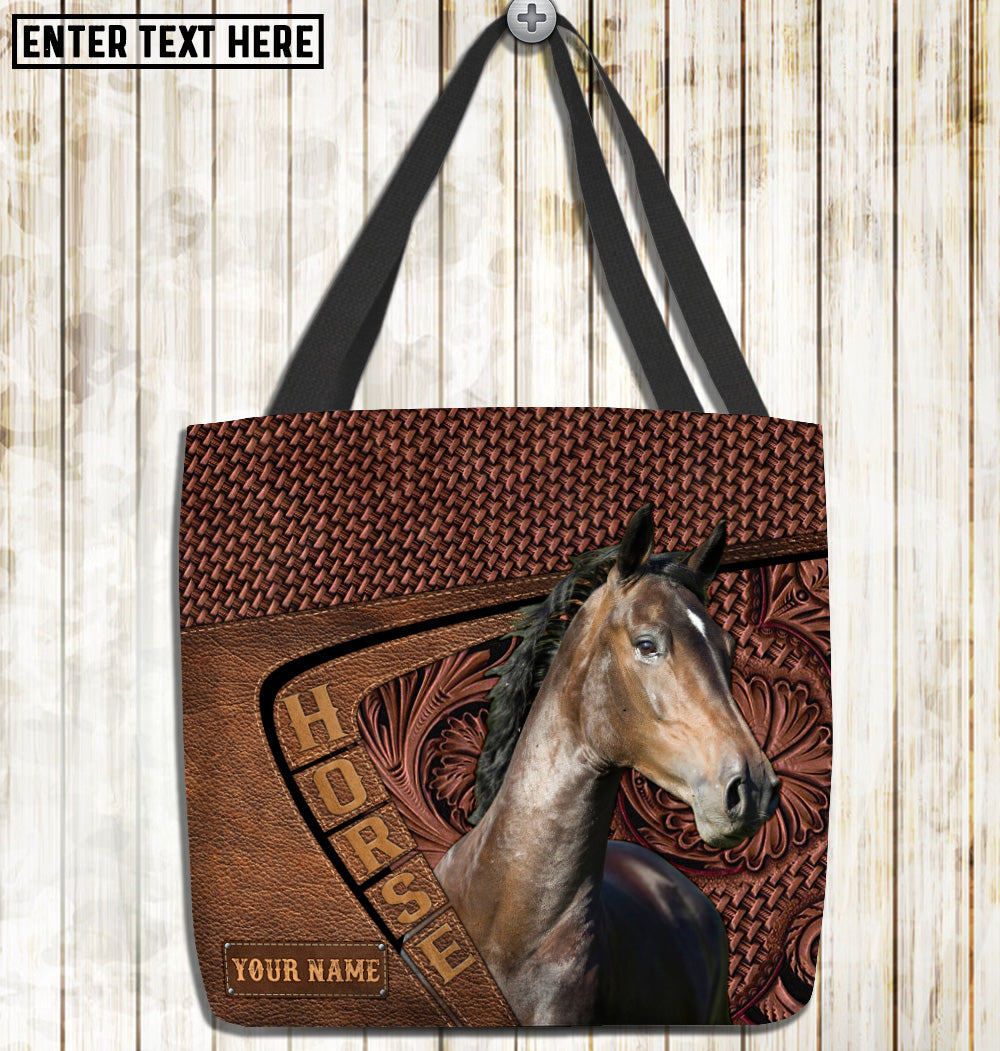 Joycorners Hackney Horse Carving Leather Pattern Custom Name 3D Tote Bag