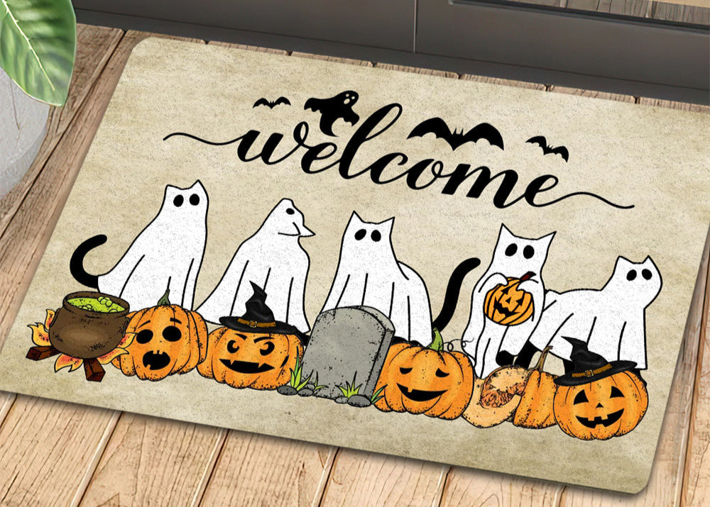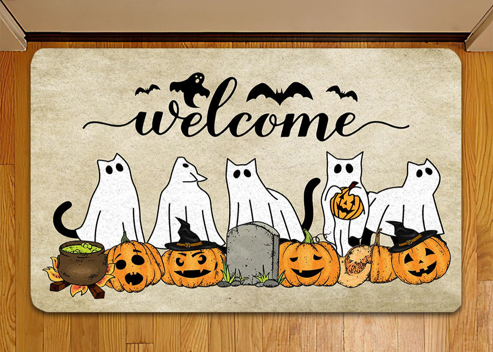 Joycorners Halloween Cat Doormat, Welcome, Gift For Cat Lovers, New Home Gift, Housewarming Gift, Cat Decor LM0210