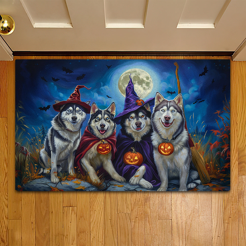 Joycorners Halloween Husky Dog Doormat, A Spooky Husky Gathering, Doormat For Home Decor Housewarming Gift, Welcome Mat Gift For Dog Lovers LM0210