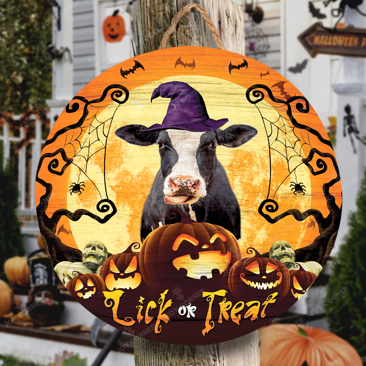 Joycorners Happy Halloween Holstein Lick Or Treat Round Wooden Sign