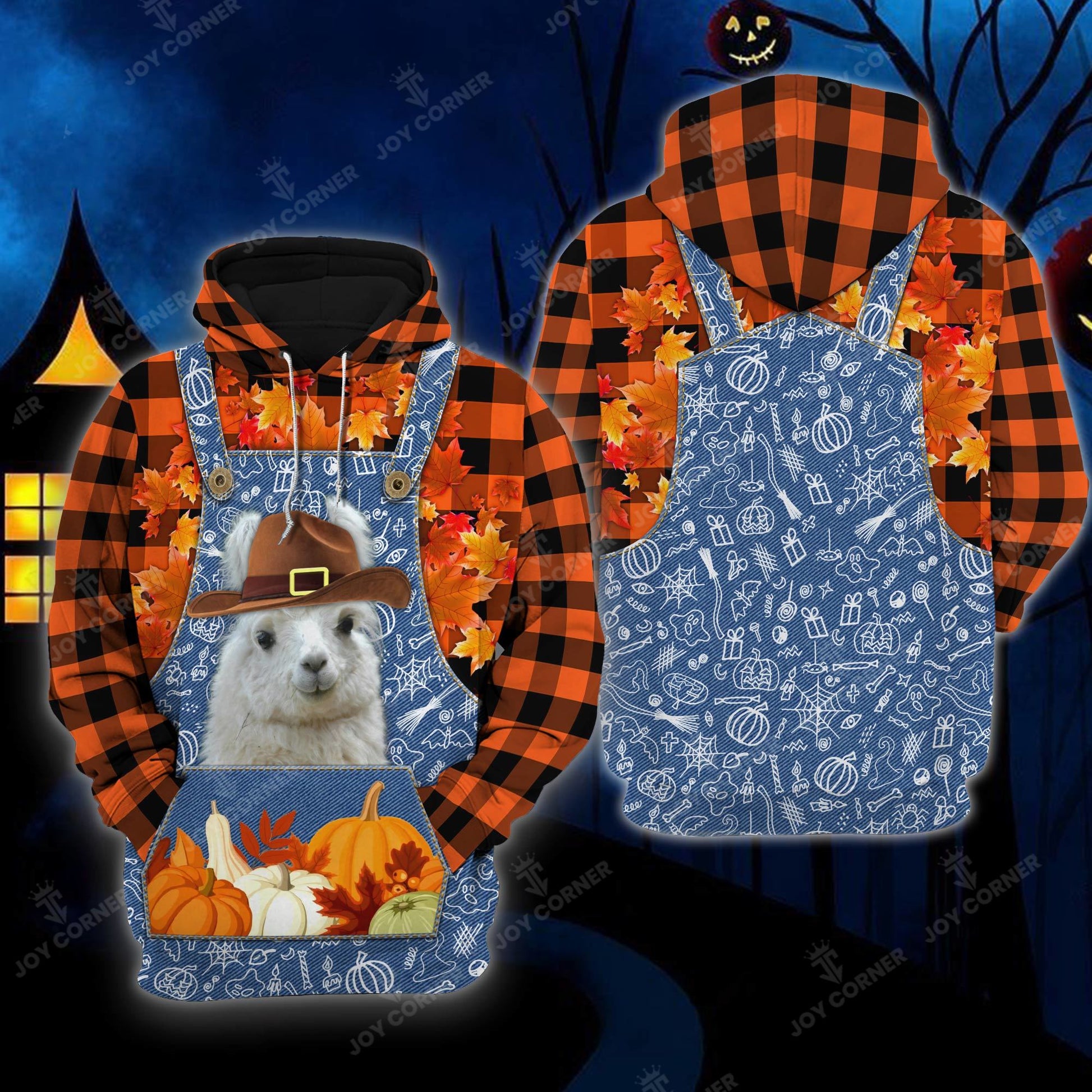 Joycorners Happy Halloween Llama Orange Plaid All Printed 3D Shirt