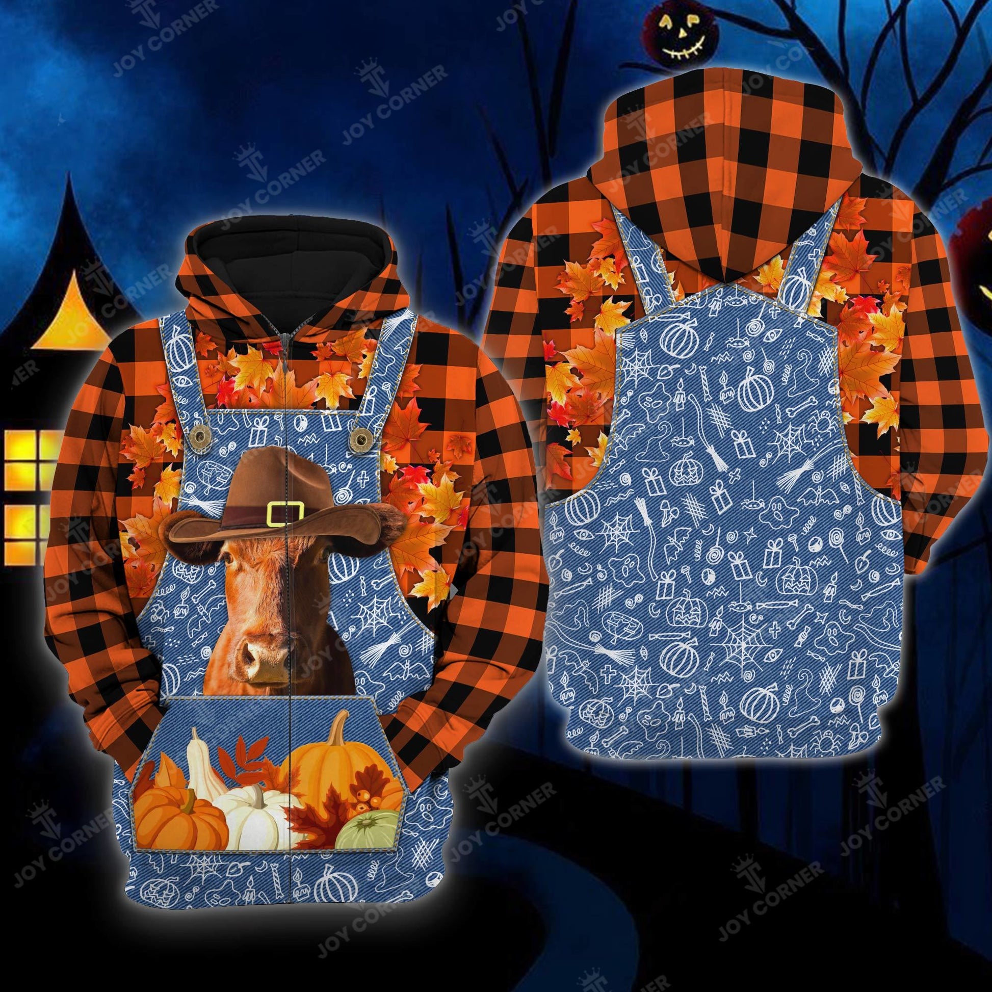 Joycorners Happy Halloween Red Angus Orange Plaid All Printed 3D Shirt
