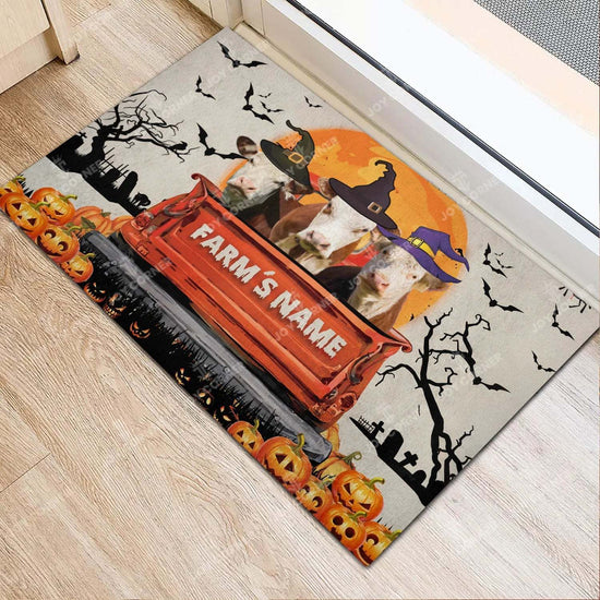 Joycorners Hereford Halloween Truck Custom Name Doormat