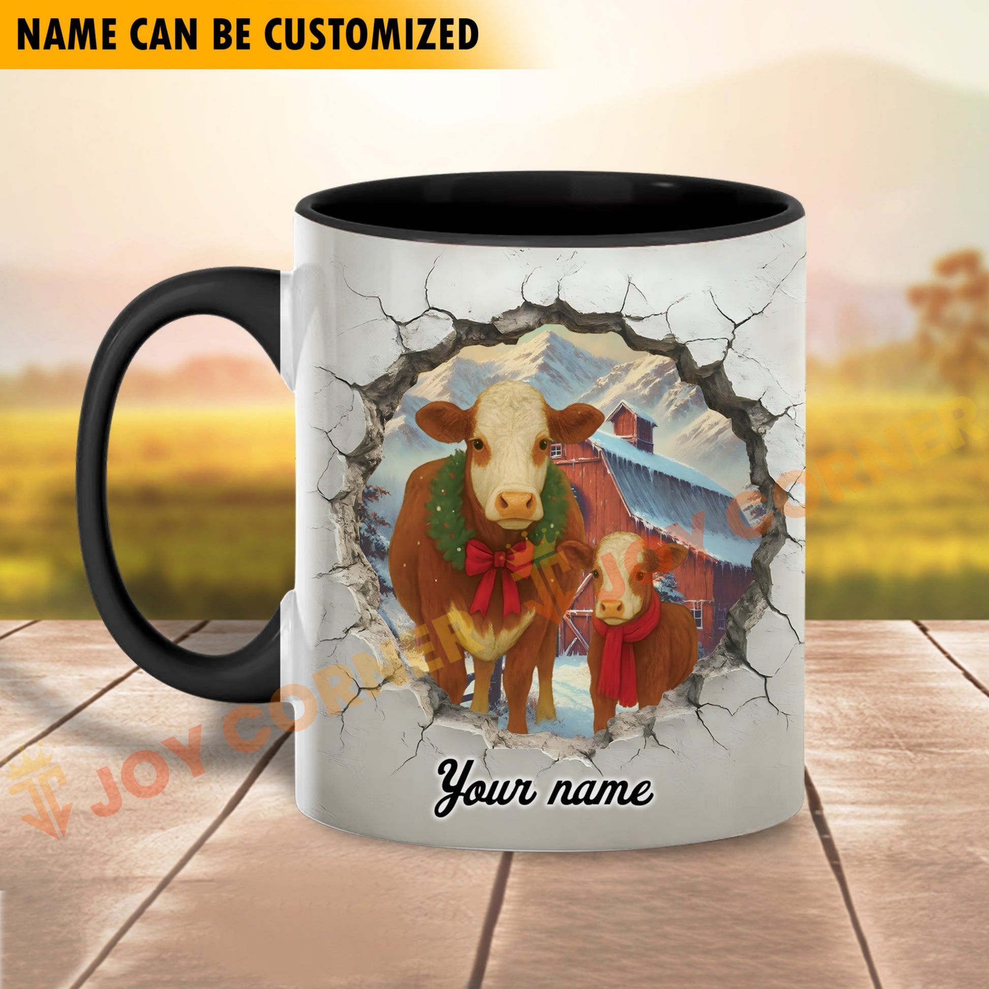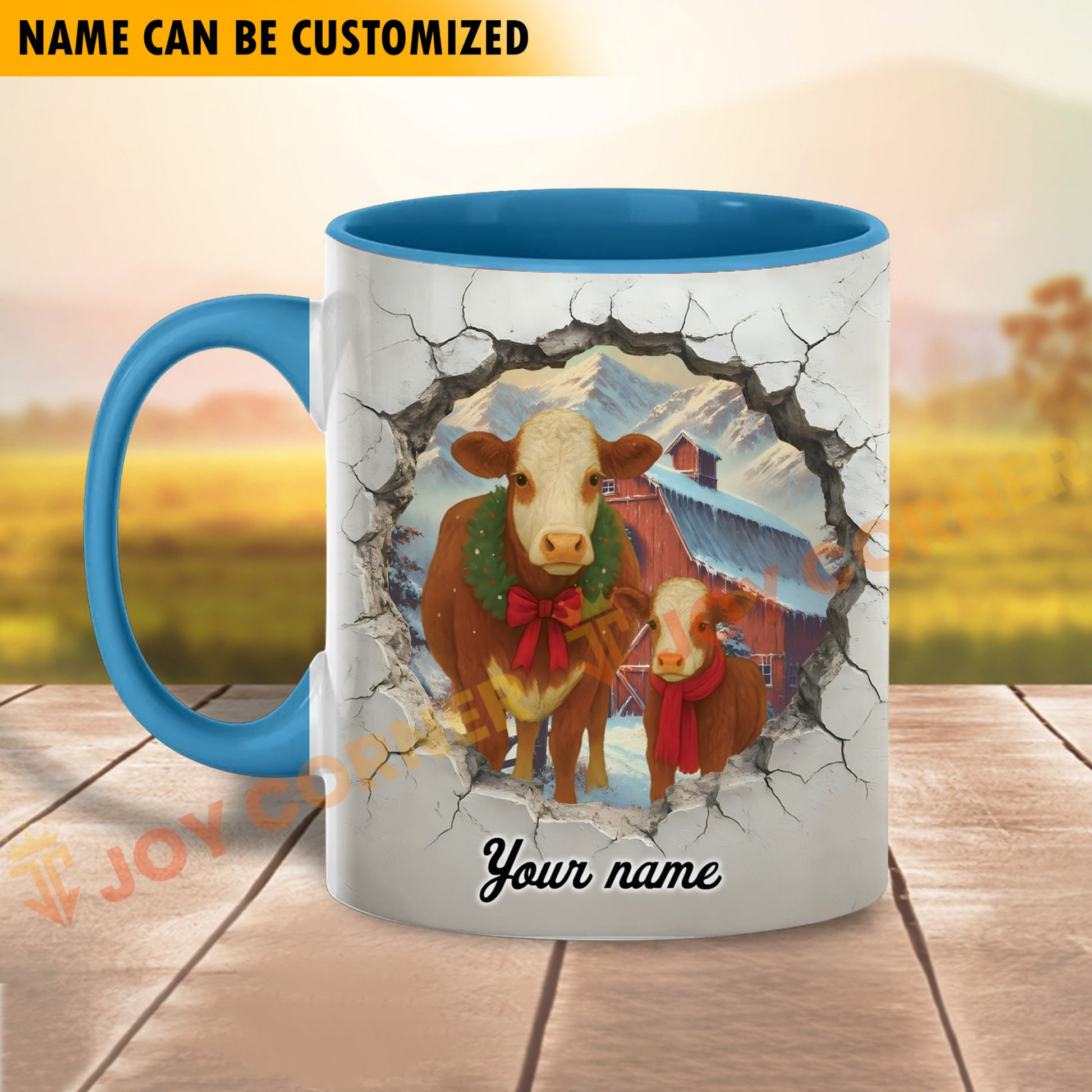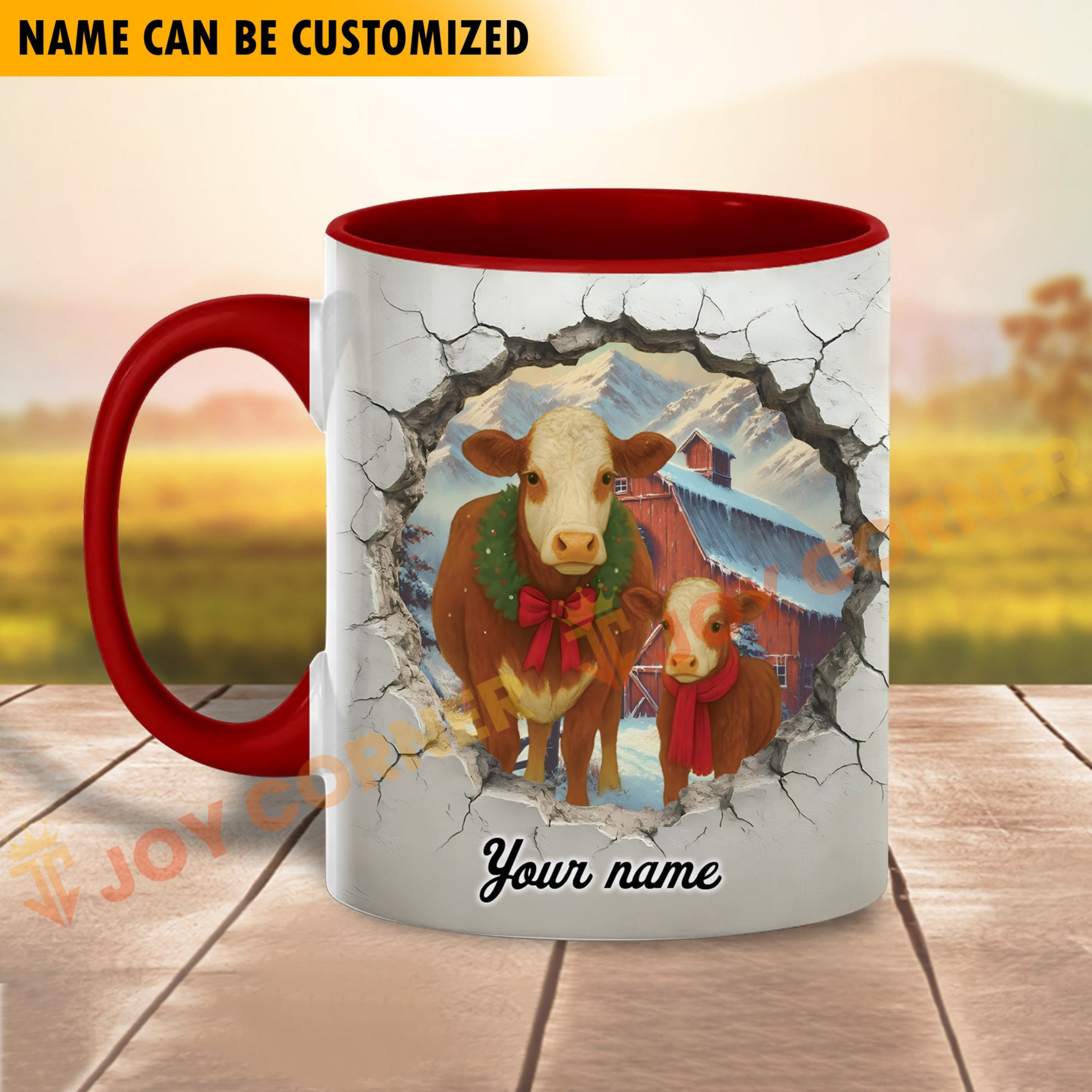 Joycorners Hereford Personalized Name Christmas Farmyard Mug