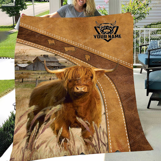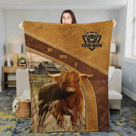 Joycorners Highland Cattle Custom Name Blanket Collection