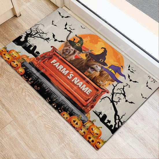 Joycorners Highland Cattle Halloween Truck Custom Name Doormat