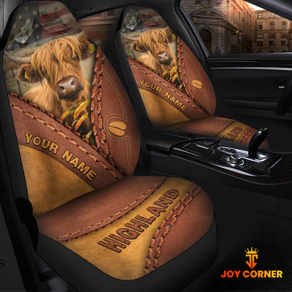Joycorners Highland Cattle Leather Pattern Customized Name Car Seat Cover Set