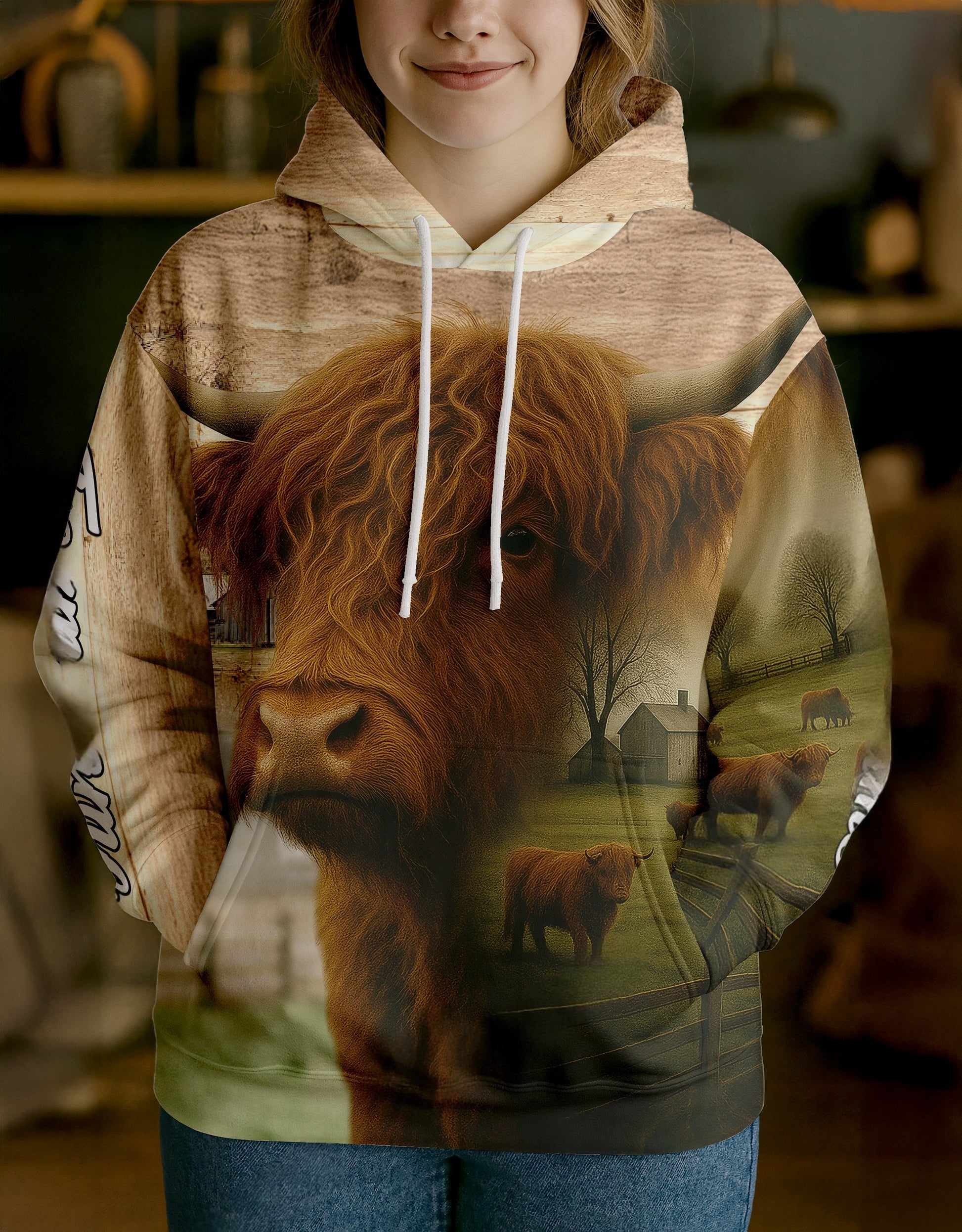 Joycorners Highland Country Style Ranch Personalized Name, Farm Name Unisex 3D Hoodie