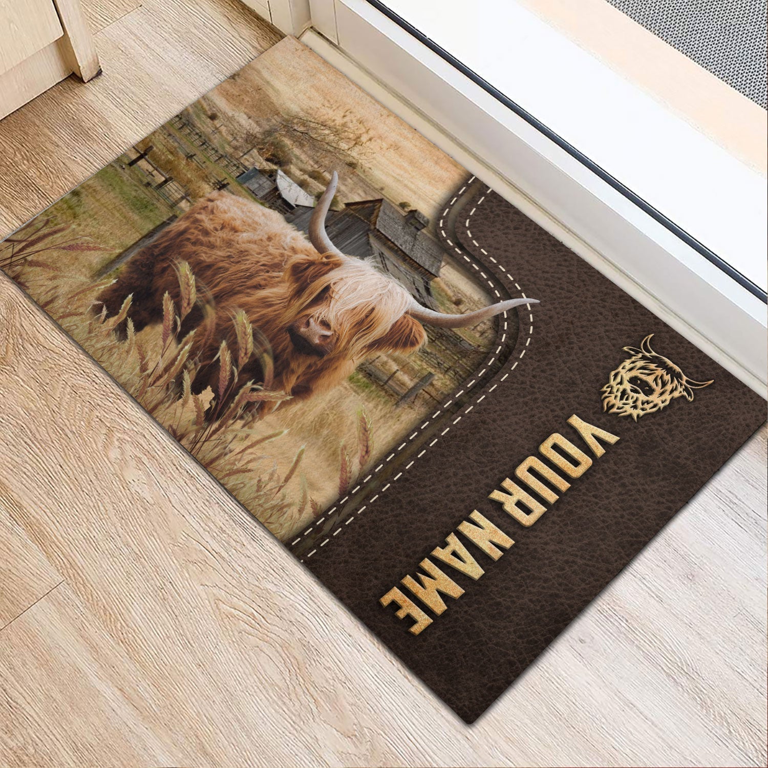 Joycorners Highland Custom Name Leather Pattern Doormat