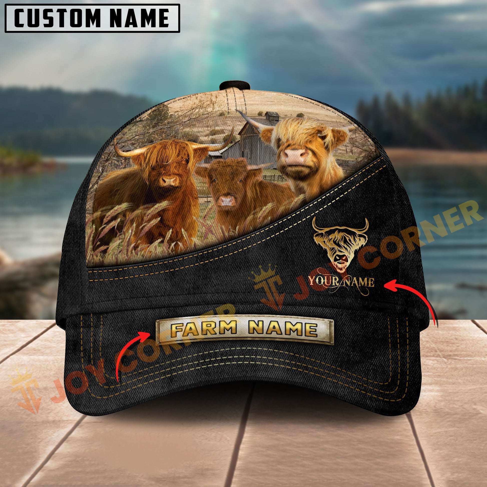 Joycorners Highland Farm Cattle Multicolor Options Personalized Name 3D Cap