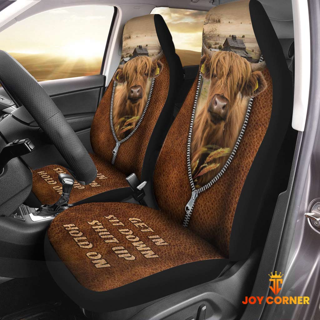 Joycorners Highland Zipper Leather Pattern Car Seat Covers Universal Fit (2Pcs)