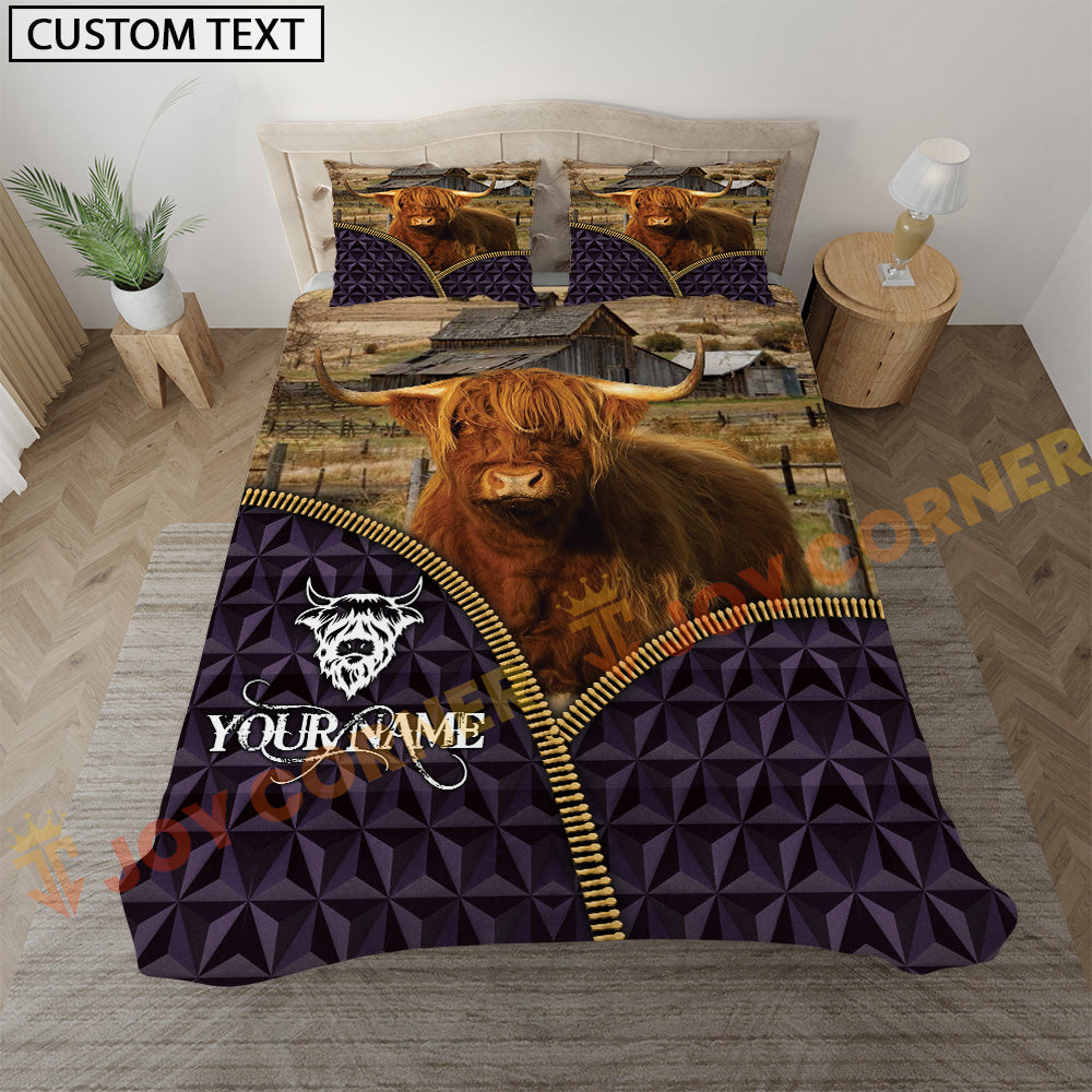 Joycorners Highland Purple Geometric Farmhouse Personalized Name Bedding Set 3D All Over Printed