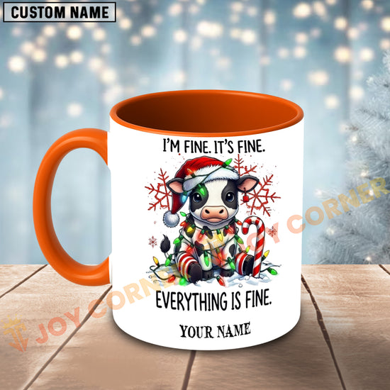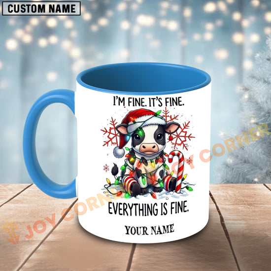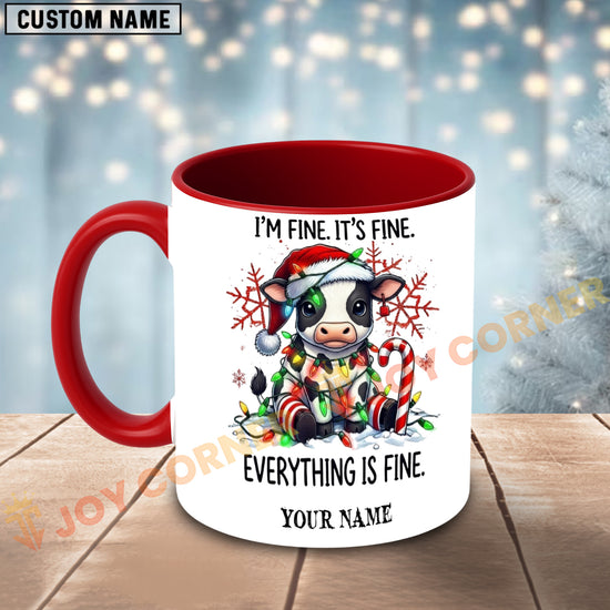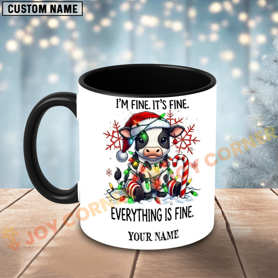 Joycorners Holstein Cow Christmas Everything Is Fine Custom Name Mug