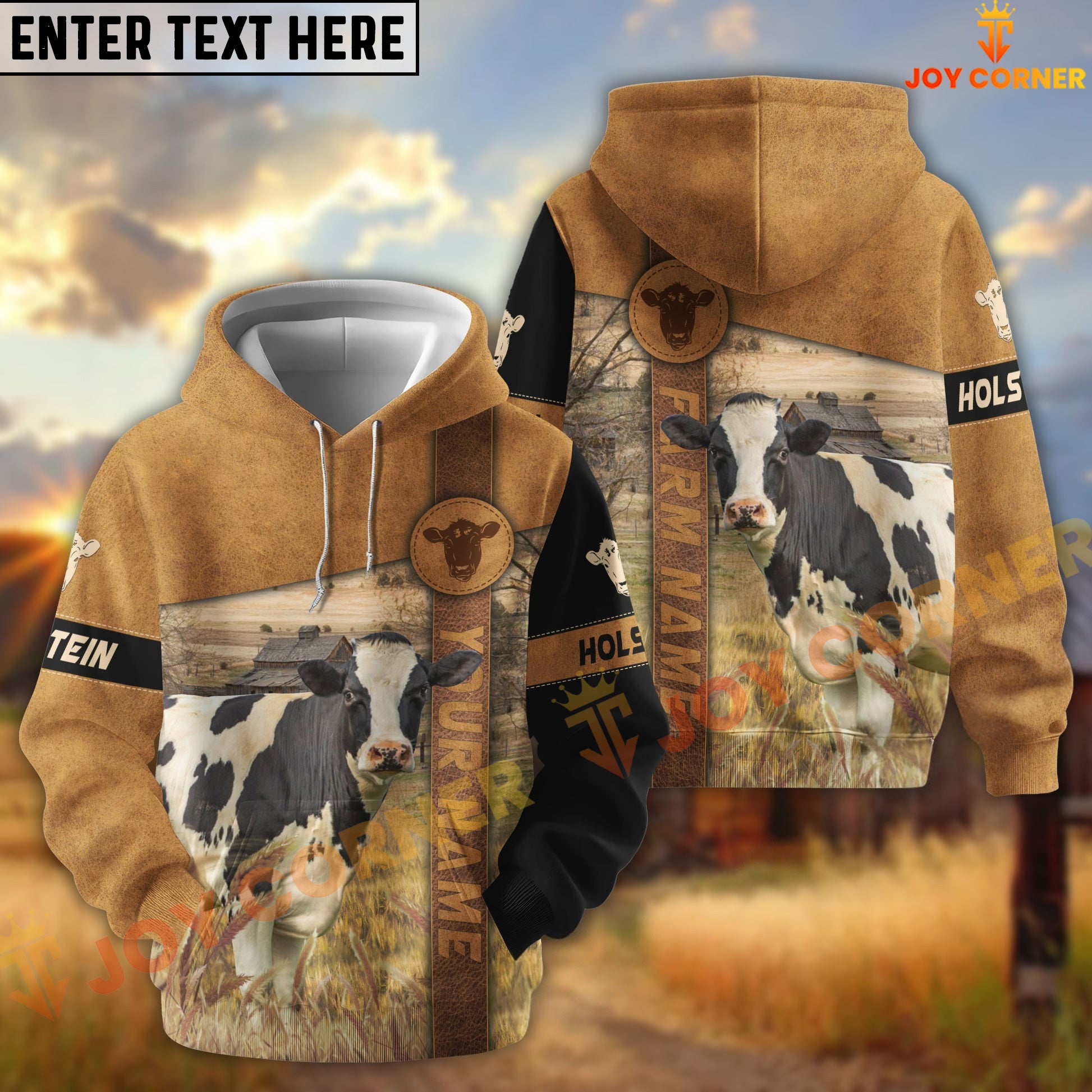 Joycorners Holstein Customize Name, Farm Name Brown Pattern Hoodie