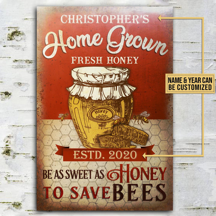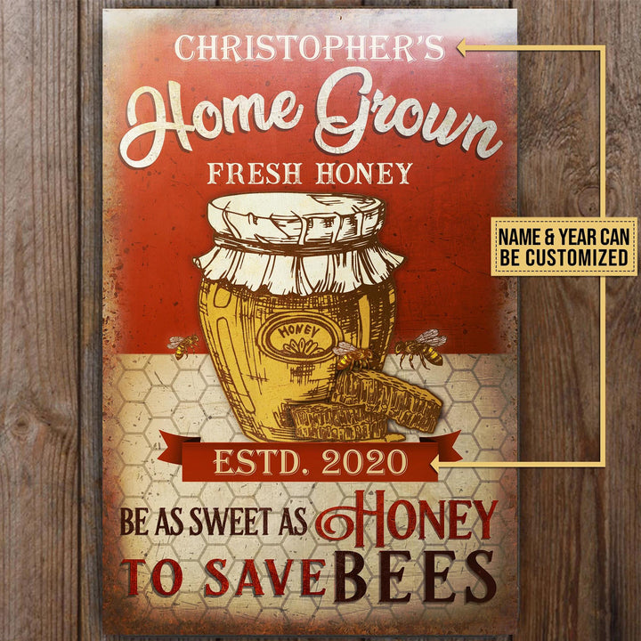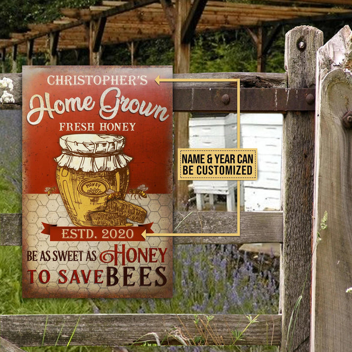Joycorners Home Grown Honey Bee Farm Rectangle Metal Sign Custom Name Year