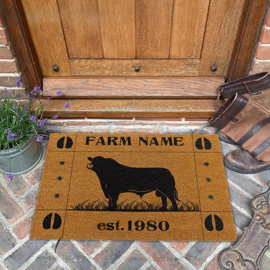 Joycorners Hoove Custom Farm Name Custom Year Coir Doormat (13 Cattle Breeds)