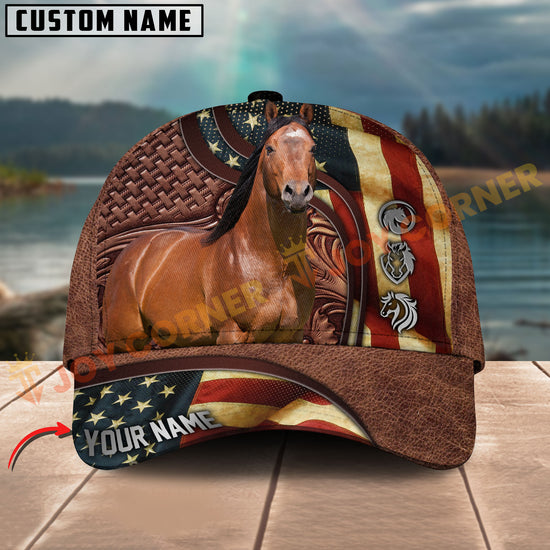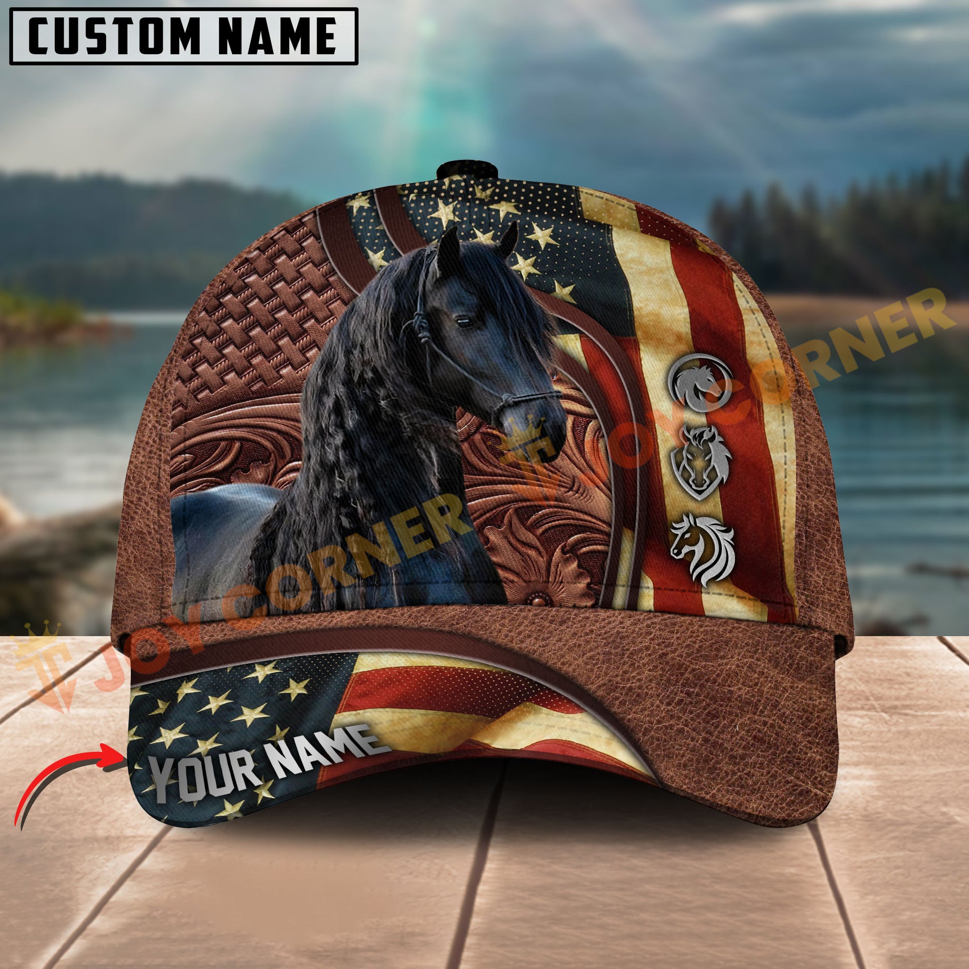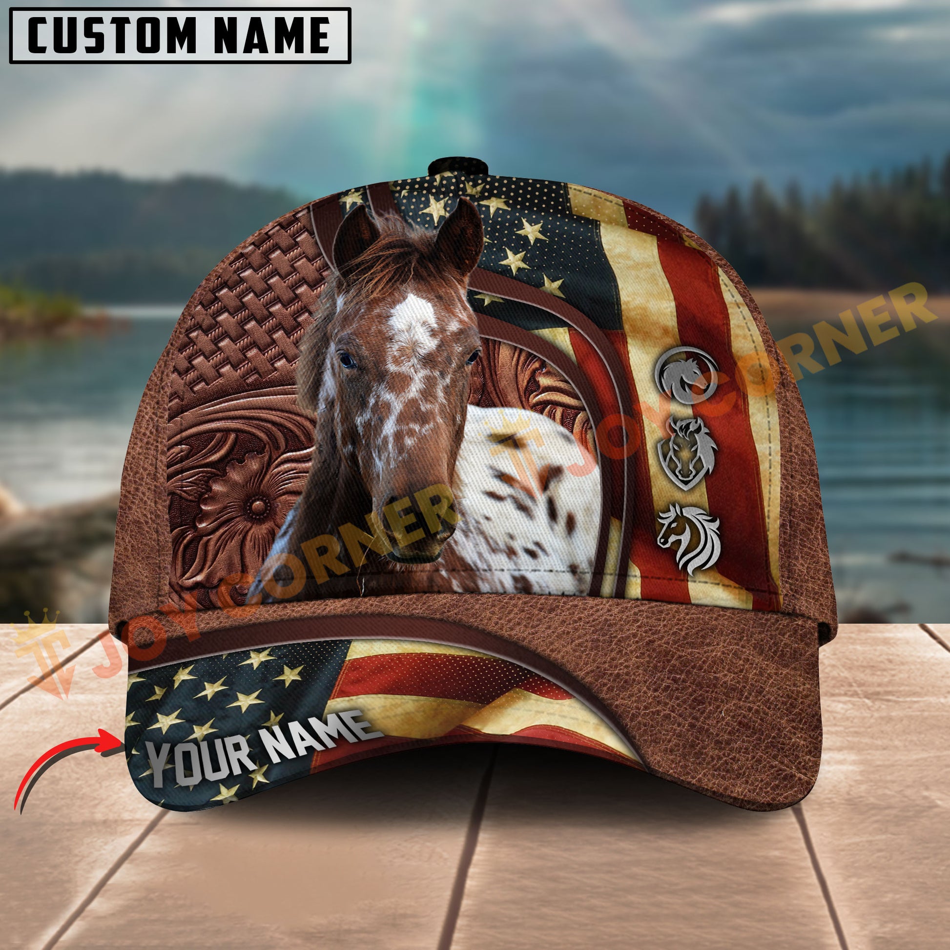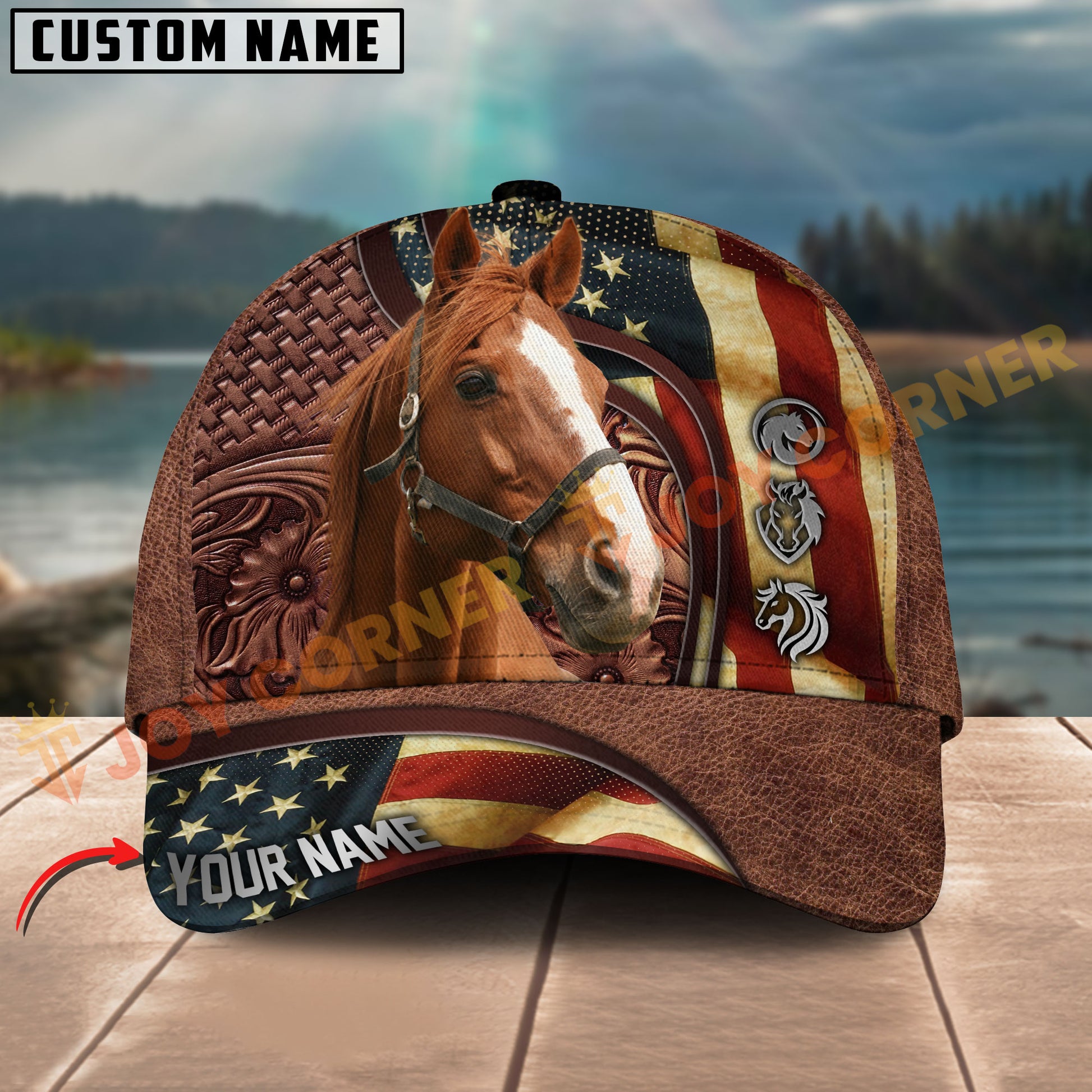 Joycorners Horse American Flag Leather Personalized Name 3D Hat