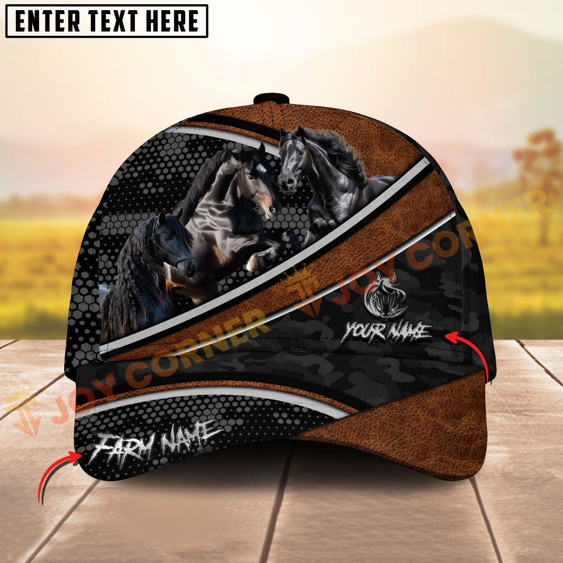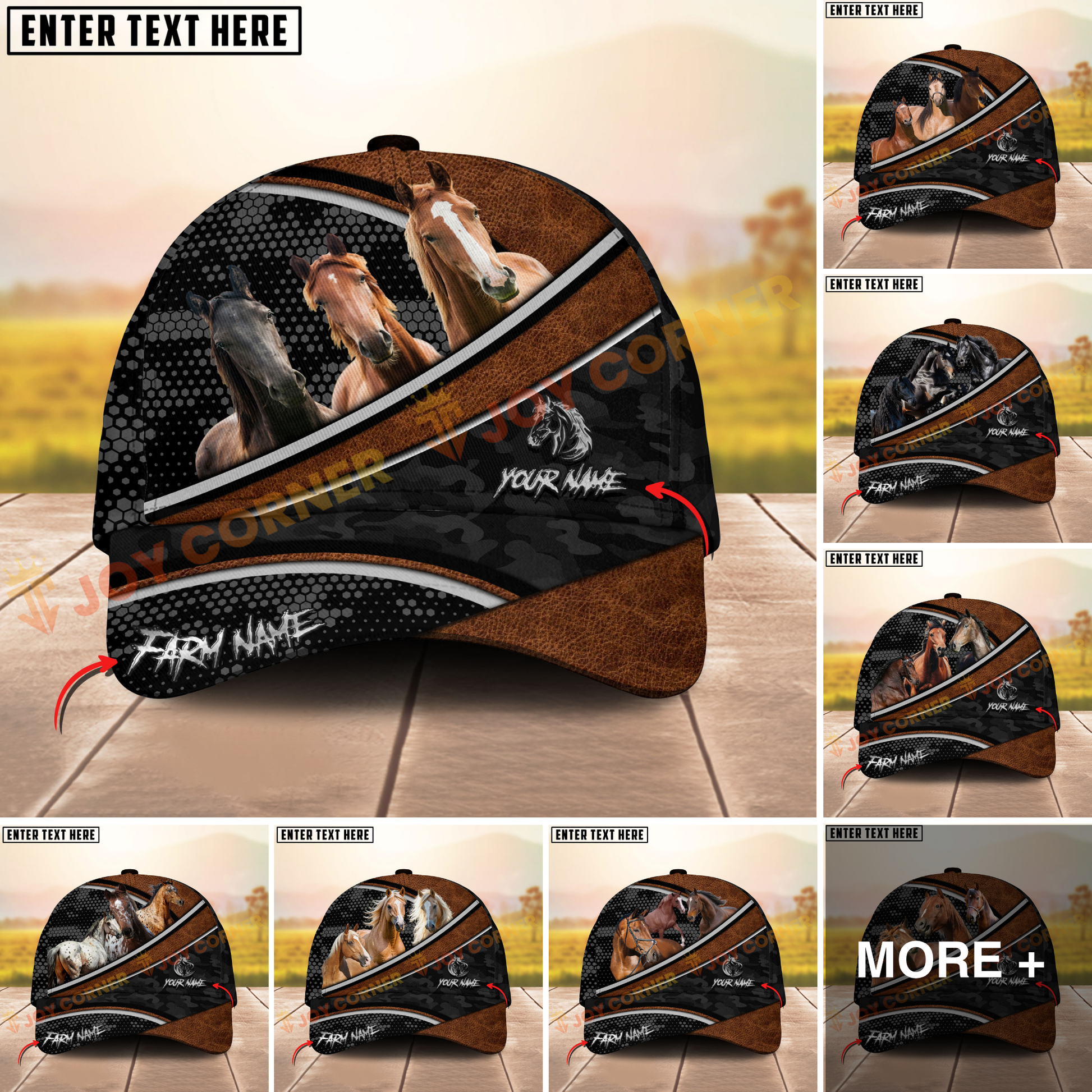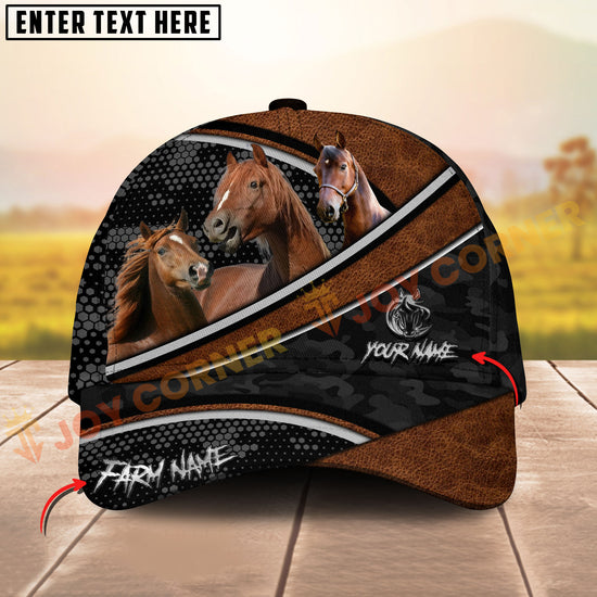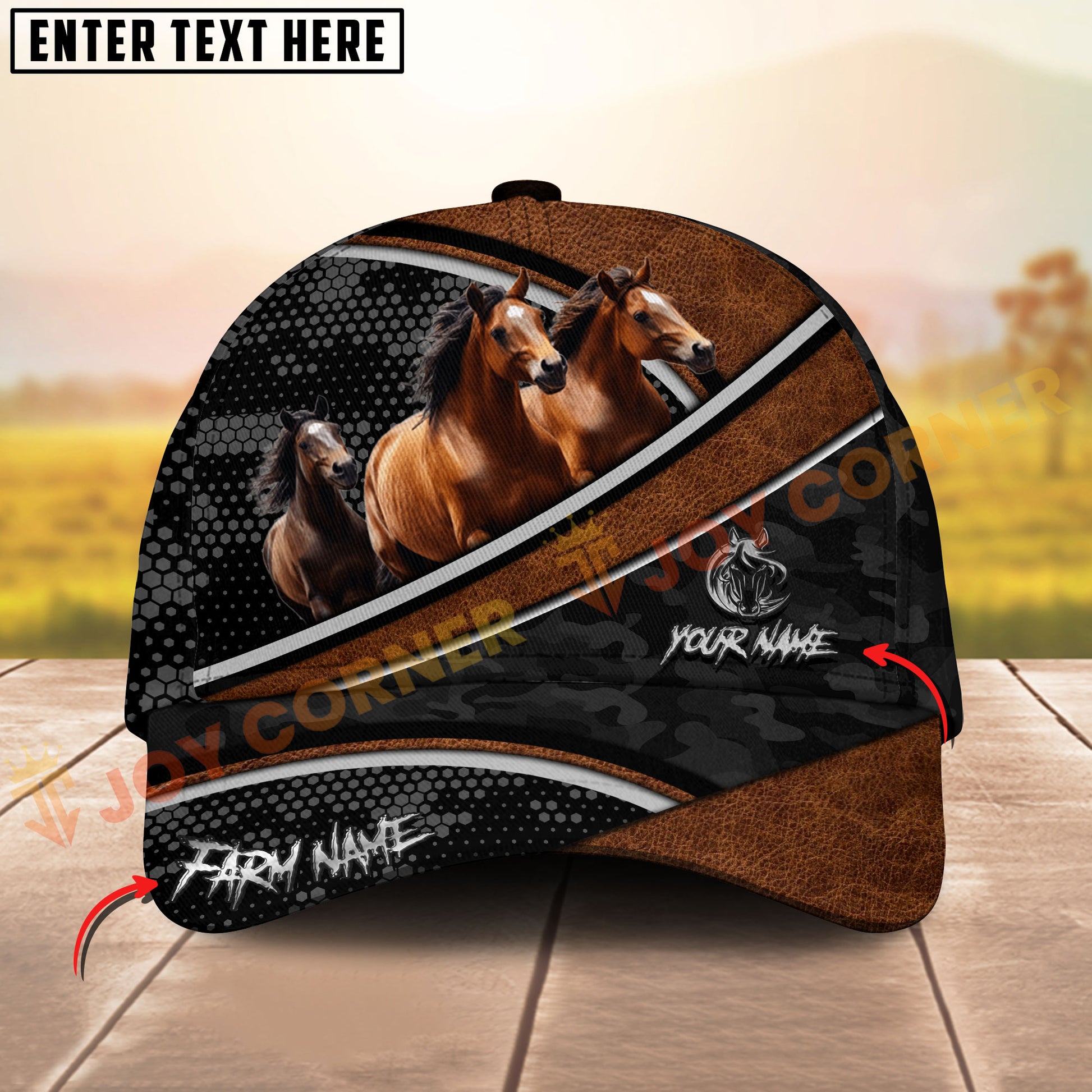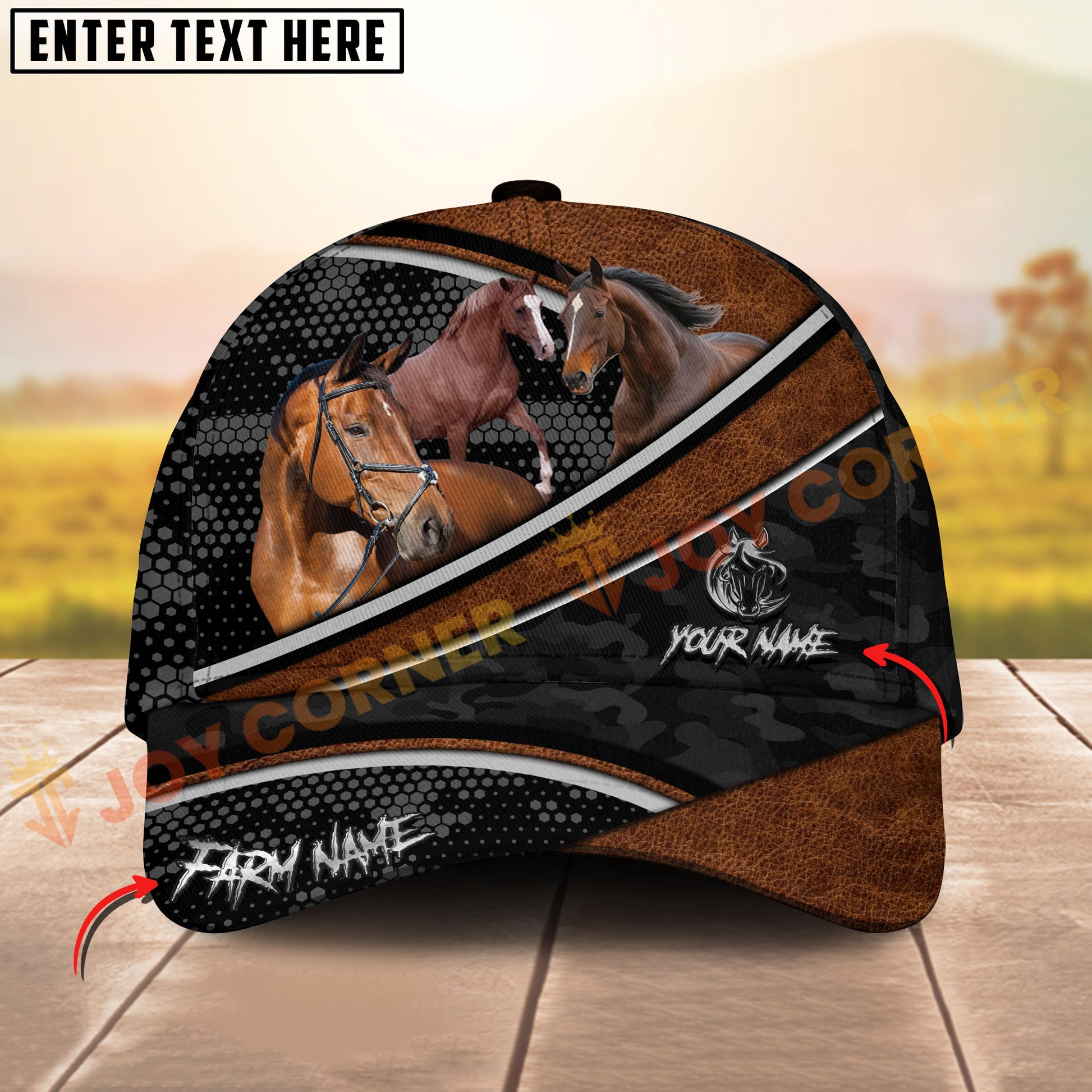 Joycorners Horse Brown Leather Pattern With Dotted Camo Personalized Name 3D Cap (9 Breeds)