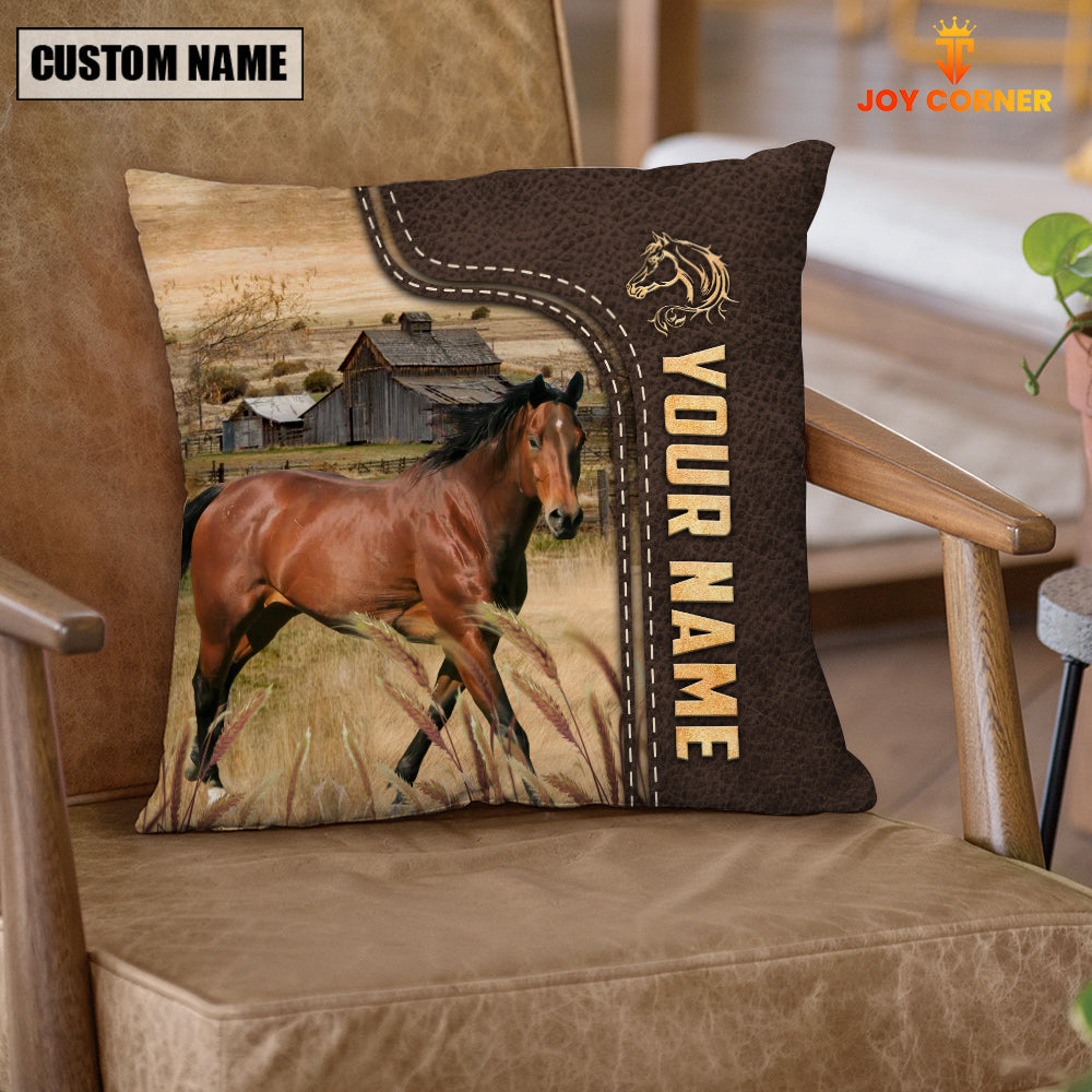 Joycorners Horse Custom Name Leather Pattern Pillow Case