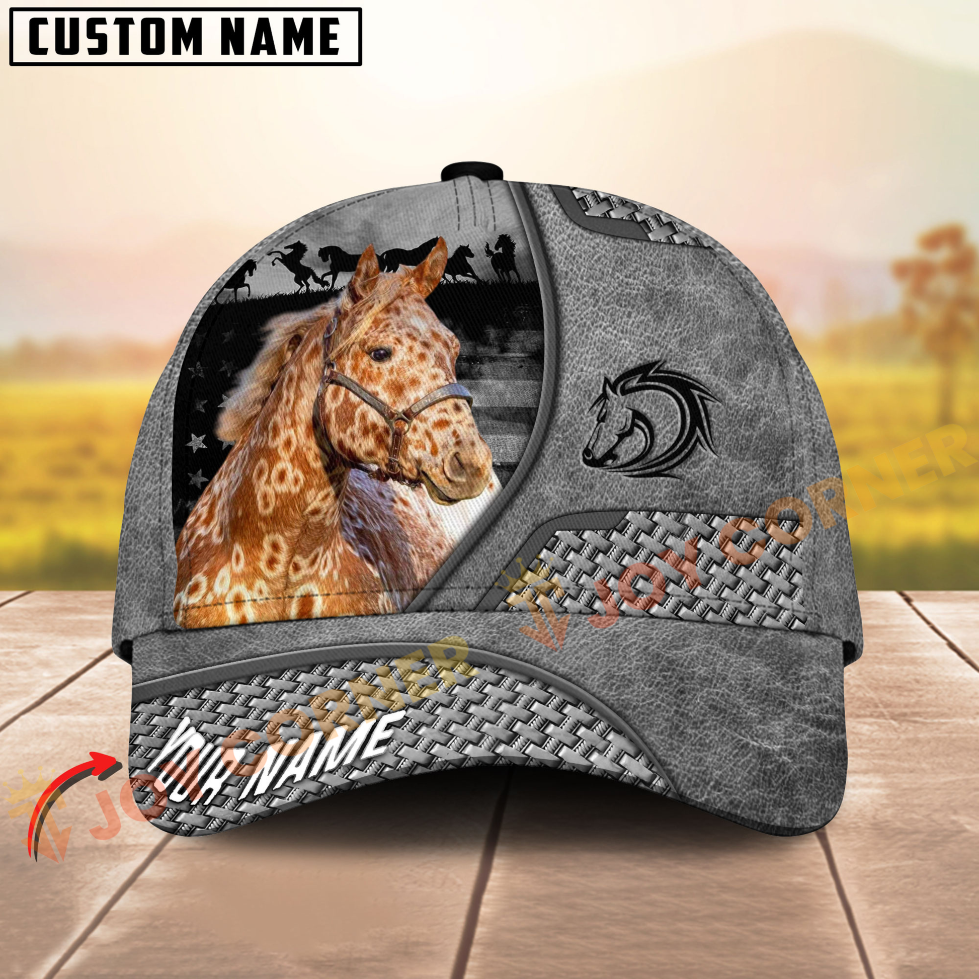 Joycorners Horse Gray Leather Woven Personalized Name 3D Hat