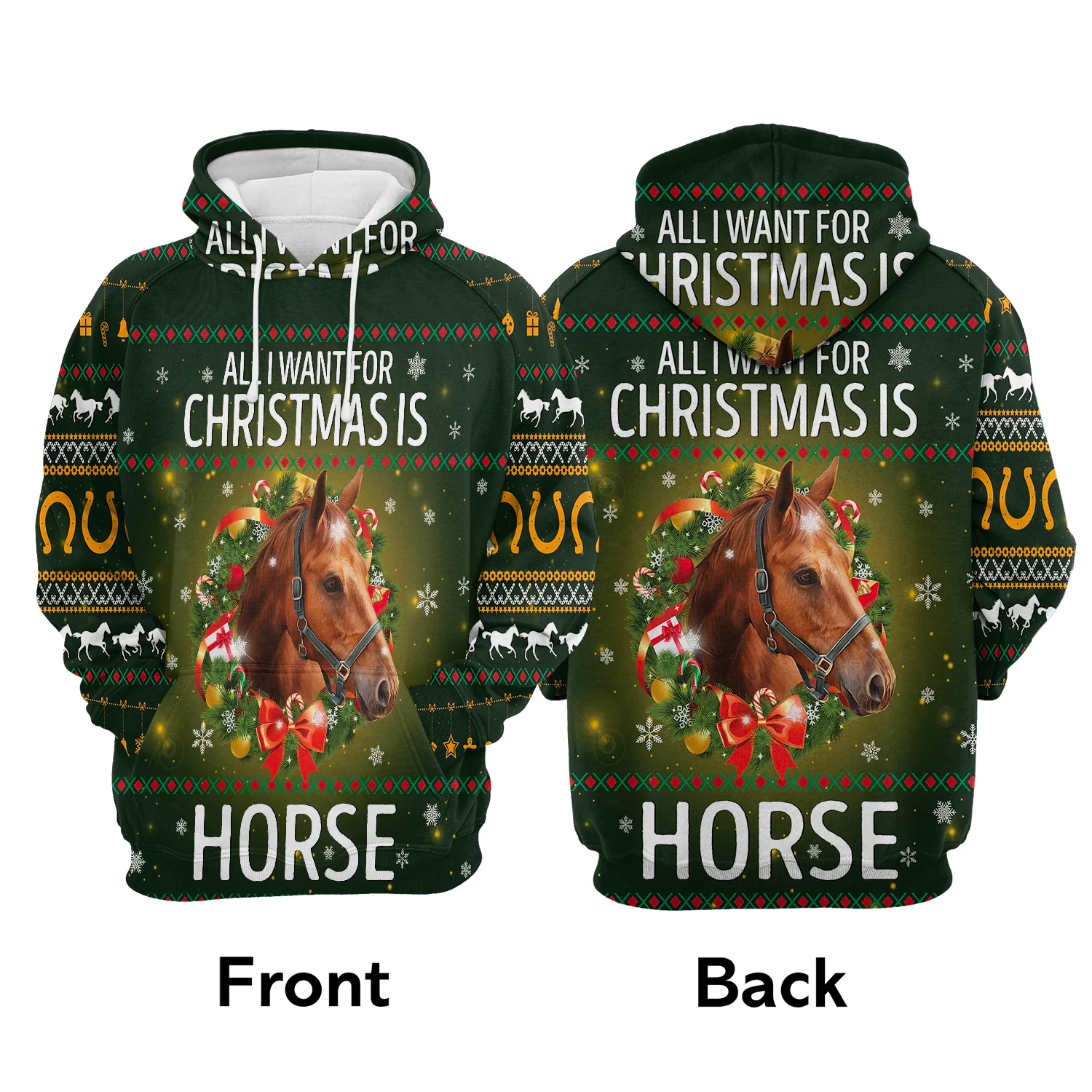 Joycorners Horse Lovers All I Want for Christmas is Horse Pattern 3D Hoodie