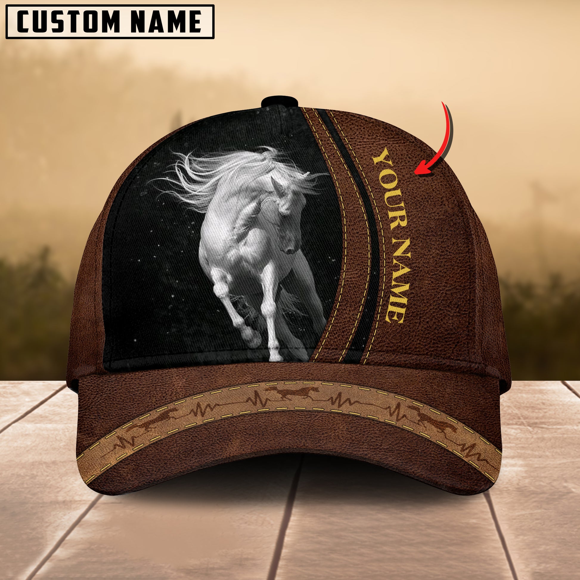 Joycorners Horse Lovers Leather Pattern Customized Name Cap