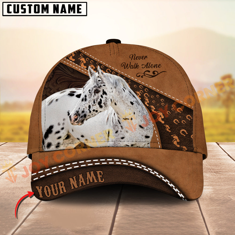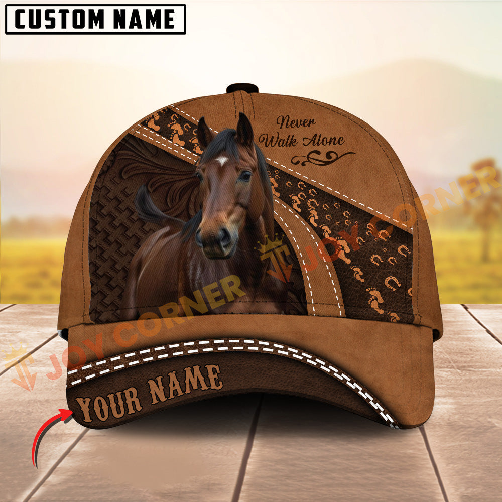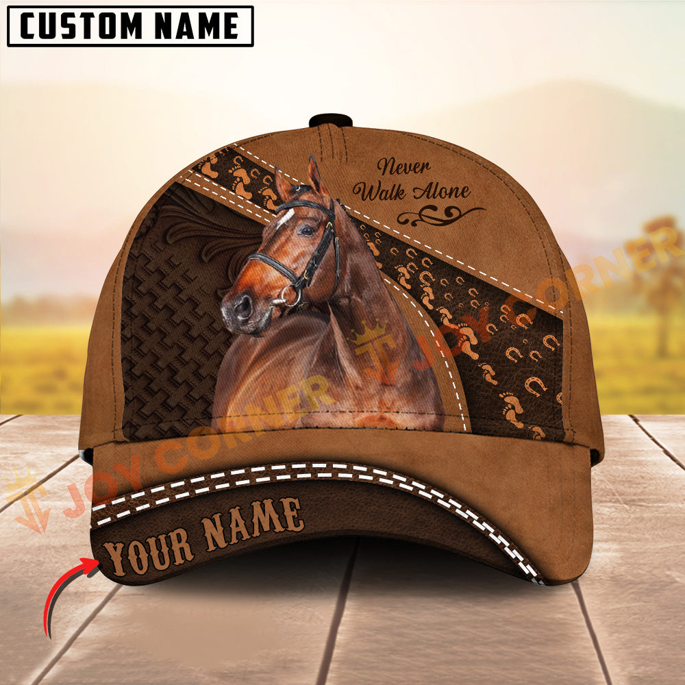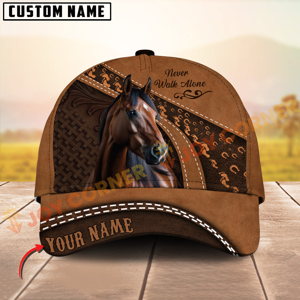 Joycorners Horse Never walk alone Quotes Tooled Leather 3D Pattern Personalized Name 3D Classic Cap (8 Breeds)
