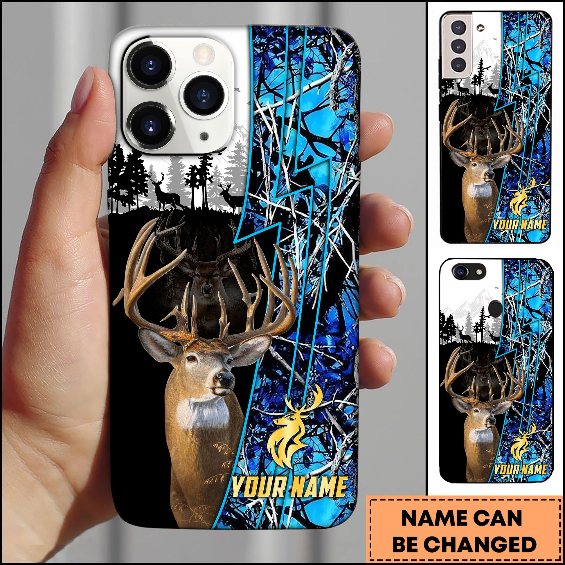 Joycorners Hunting Phone Case Whitetail Deer Lightning Split Forest Camo Art Personalized Name Phone Case | Blue