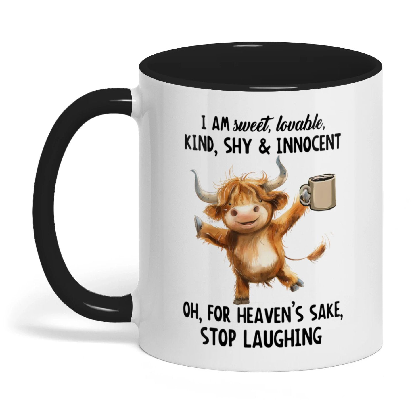 Joycorners I Am Sweet Lovable Kind Shy Innocent Oh For Heaven's Sake Cow Two Tone Mug