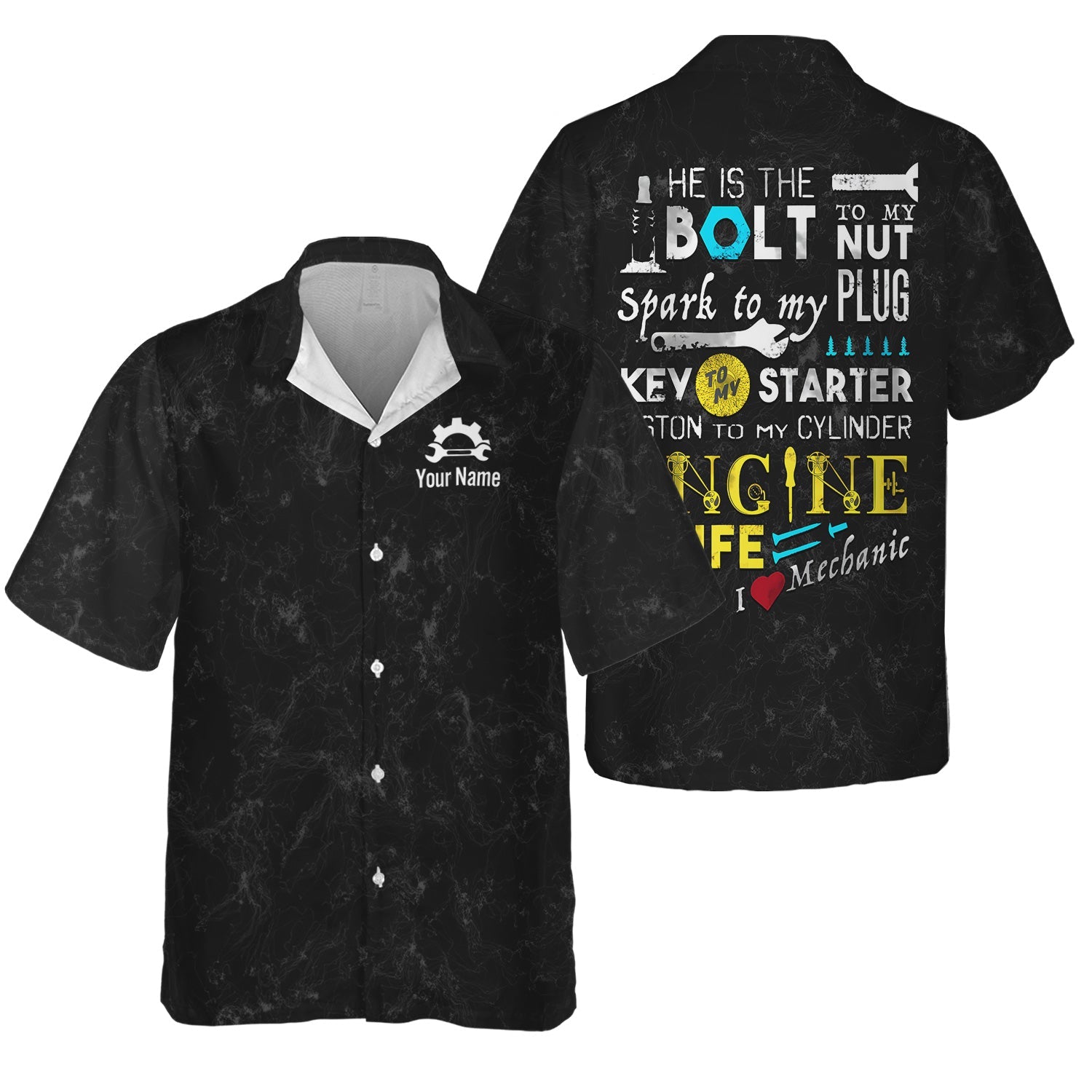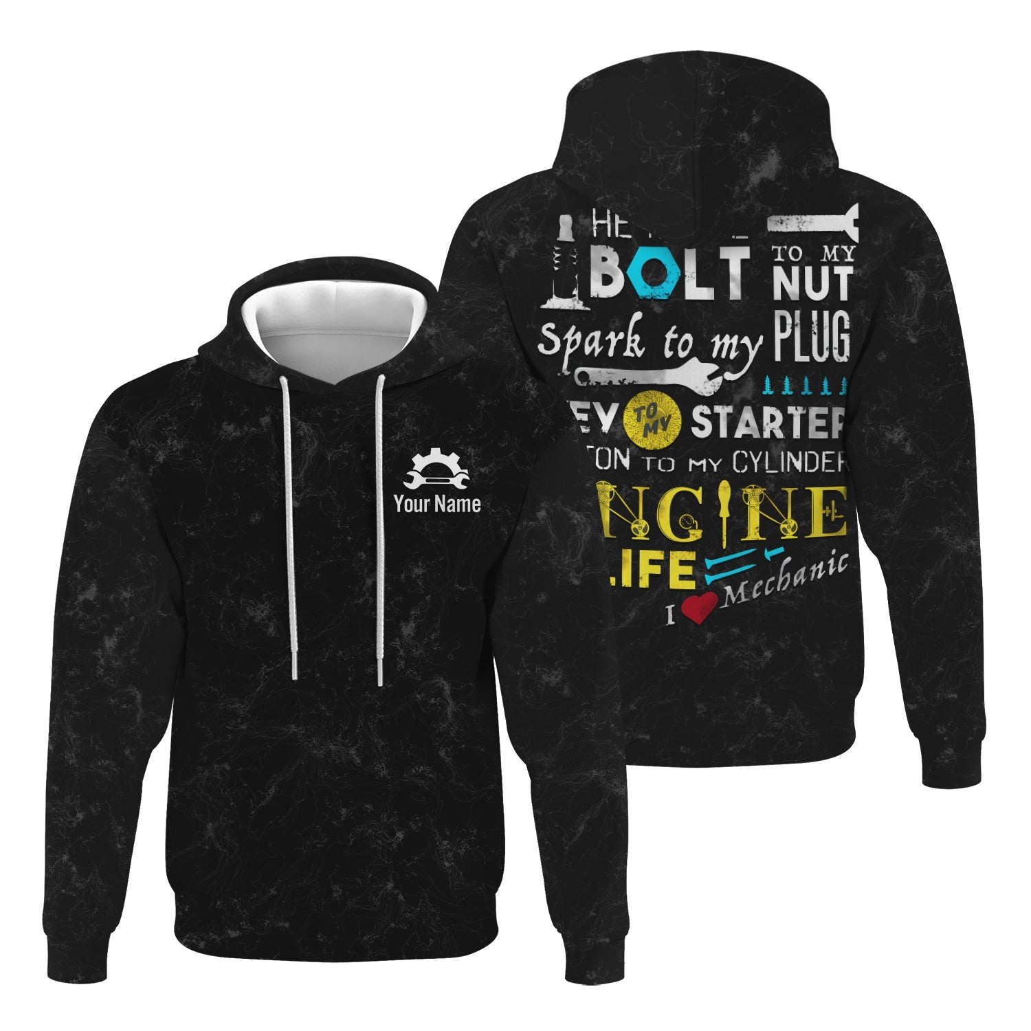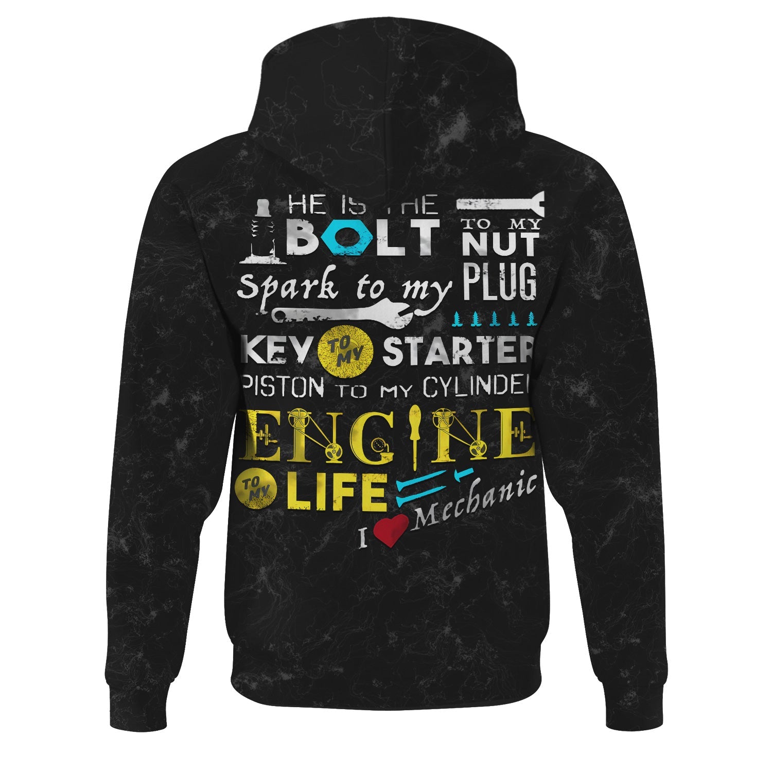 Joycorners I Love Mechanic Shirt, He Is The Bolt To My Nut Spark To My Plug Black Hoodie Jacket PT2609