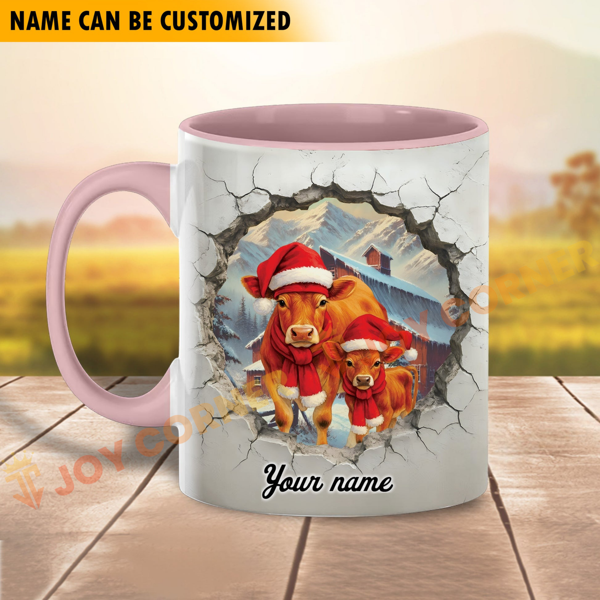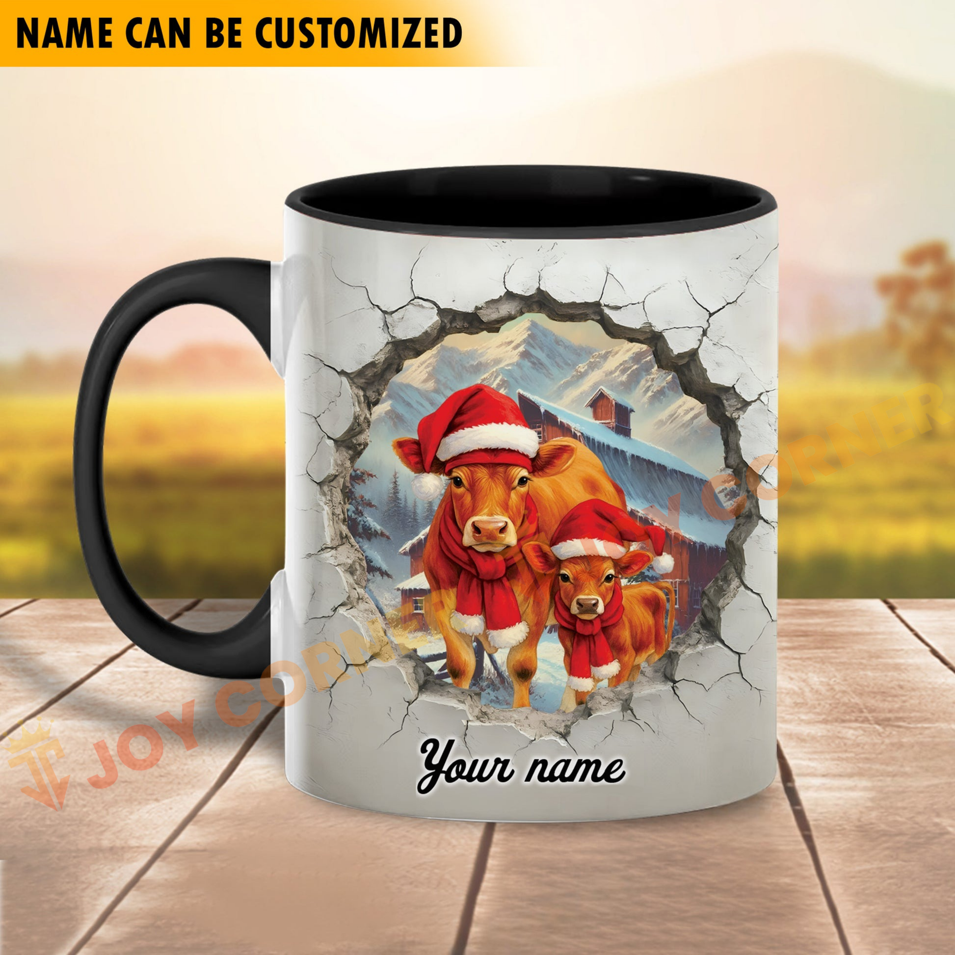 Joycorners Jersey Personalized Name Christmas Farmyard Mug