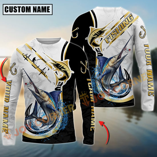Joycorners Marlin Fishing Black & Gold Custom Name, Team Name 3D Shirt