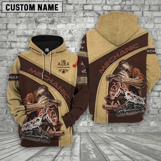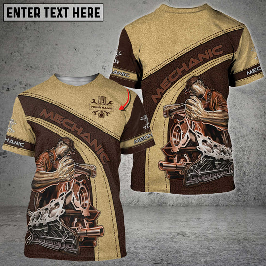 Joycorners Mechanic Custom Name Leather Pattern Printed 3D Shirt