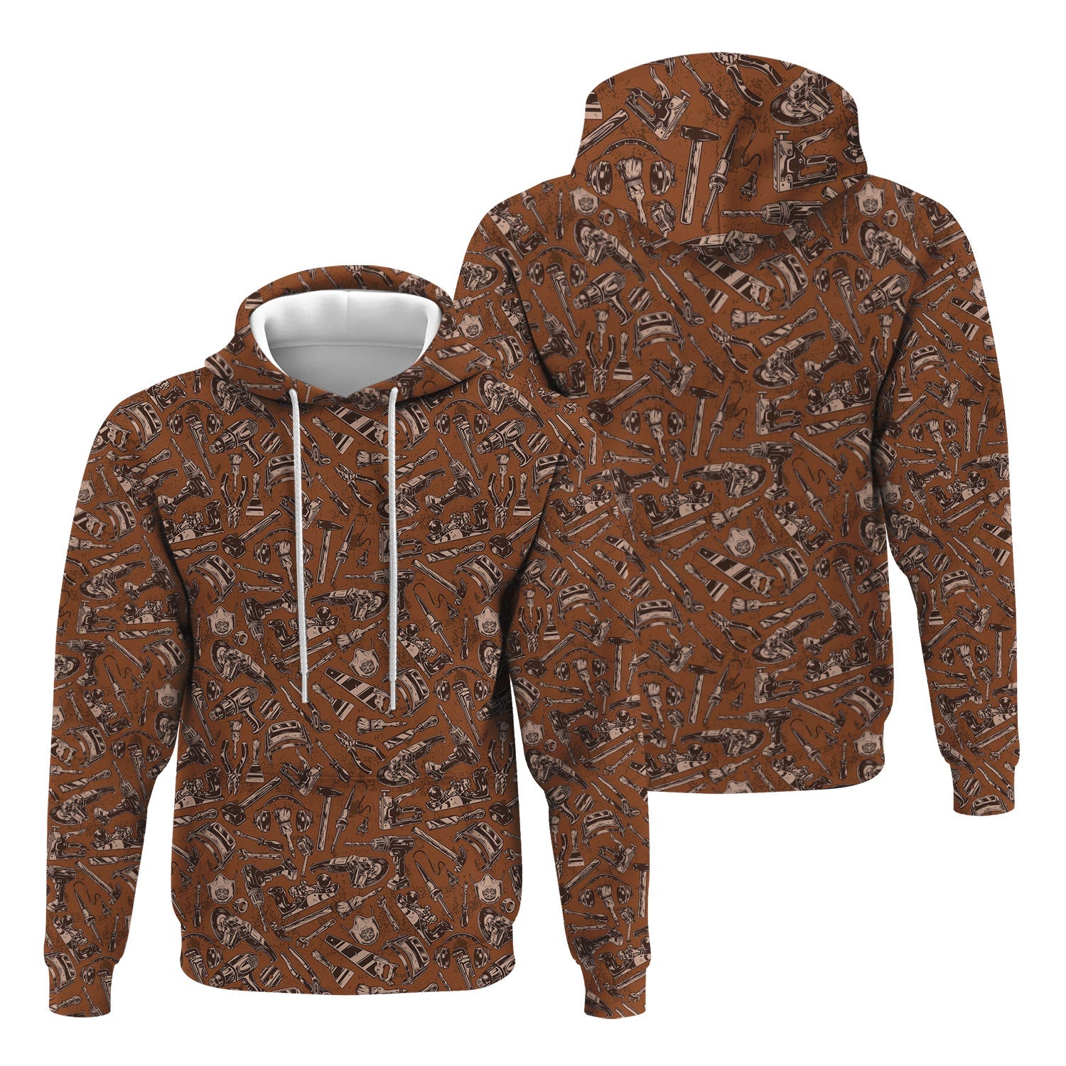 Joycorners Mechanic Tool Pattern Brown T Shirt Mechanic Orange Polo Shirt Hoodie All Over Print PT2609