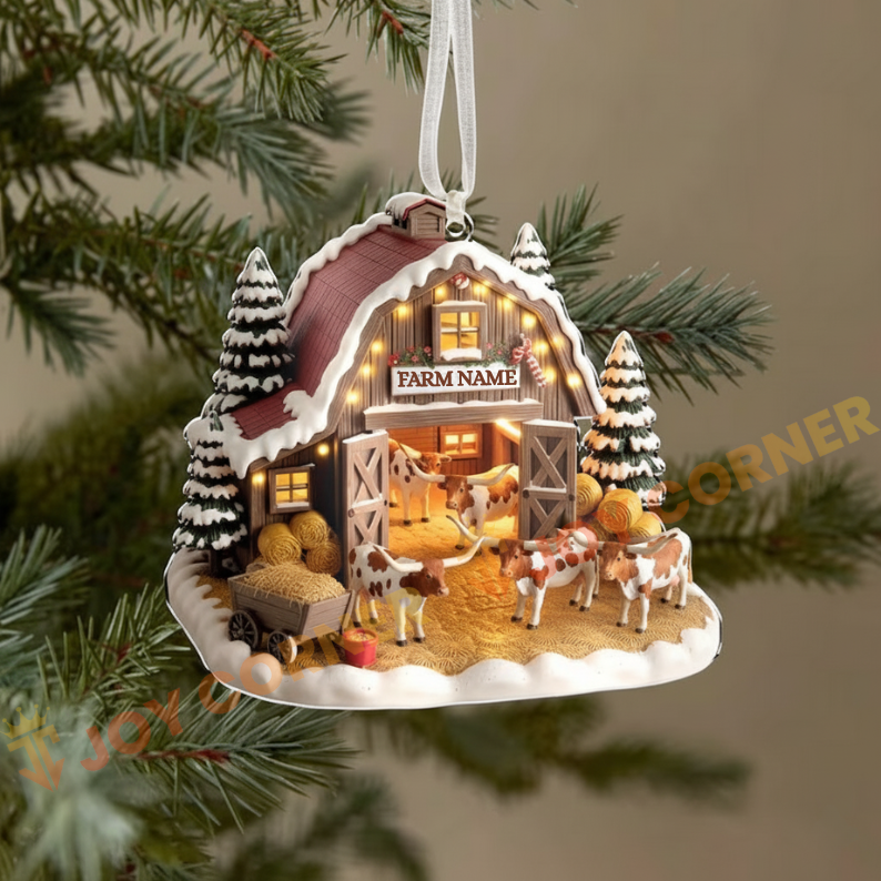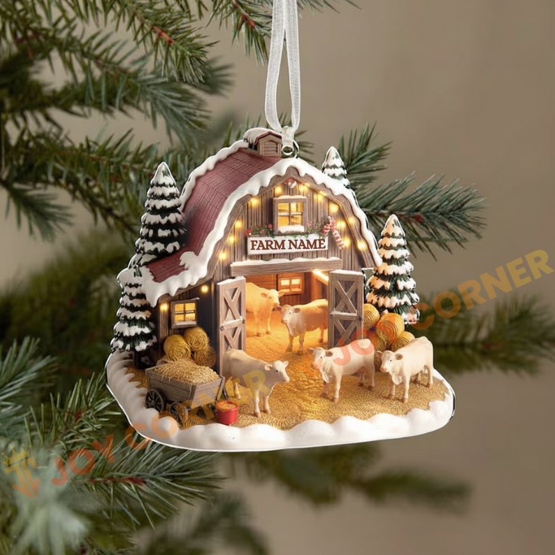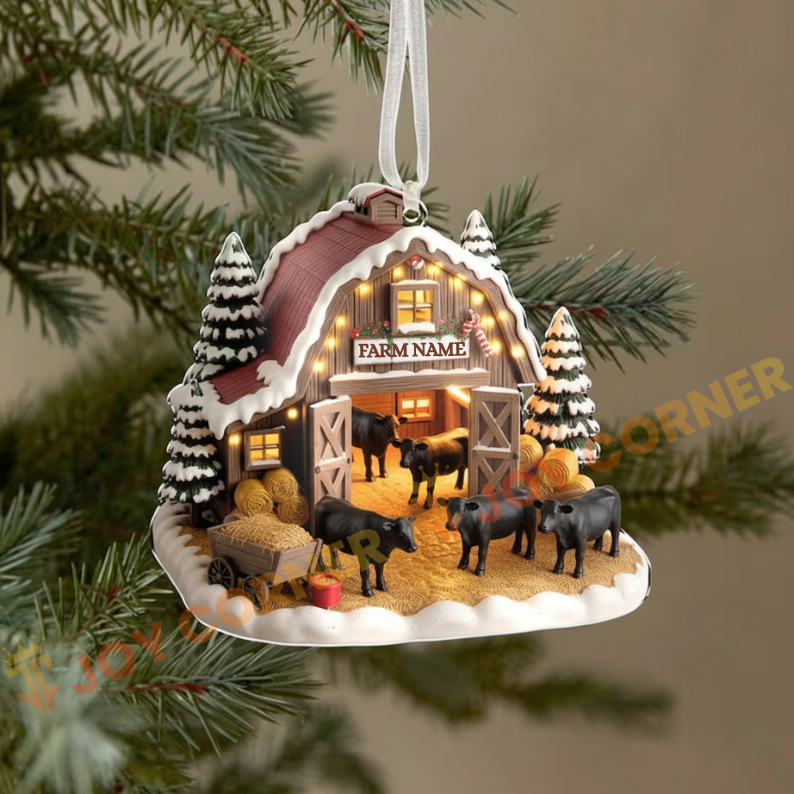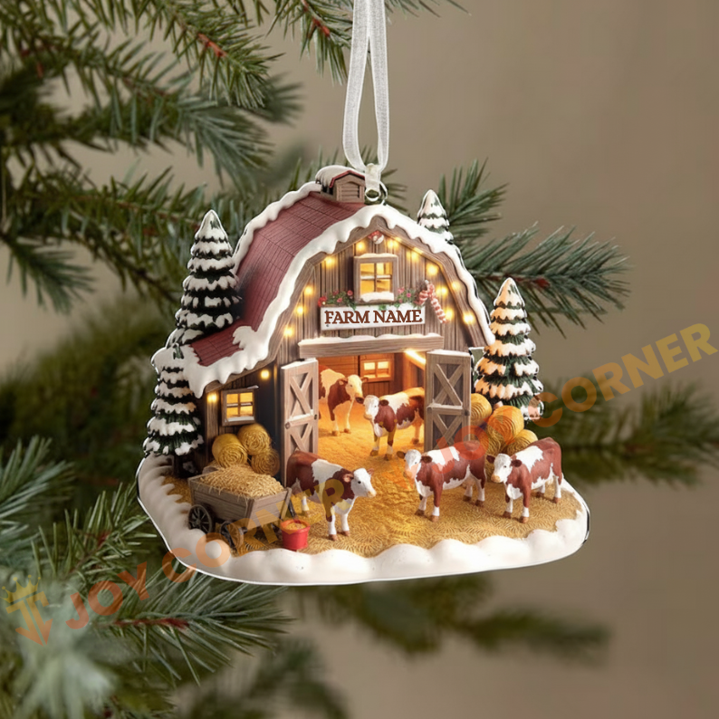 Joycorners Merry Christmas Cattles On Snow Farm Custom Name Ornament, Acrylic Ornament (8 Breed Options)